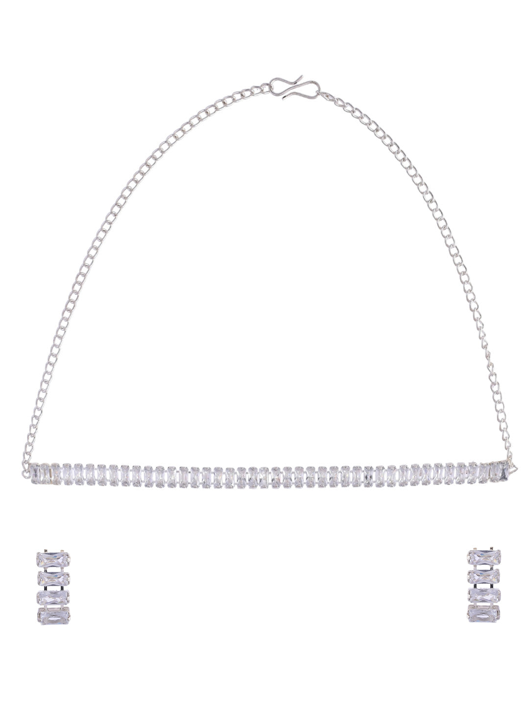 Introducing Our Silver-Plated White Cubical Beads Choker Set, Complete With Matching Earrings For A Perfectly Coordinated Look. This Exquisite Set Features Delicately Crafted Choker Adorned With White Cubical Beads, Exuding Timeless Elegance And Sophistication. The Silver-Plated Finish Adds A Touch Of Luxury, Making It Perfect For Both Formal Events And Everyday Wear. Elevate Your Style With This Versatile And Chic Jewellery Set That Effortlessly Enhances Any Outfit.