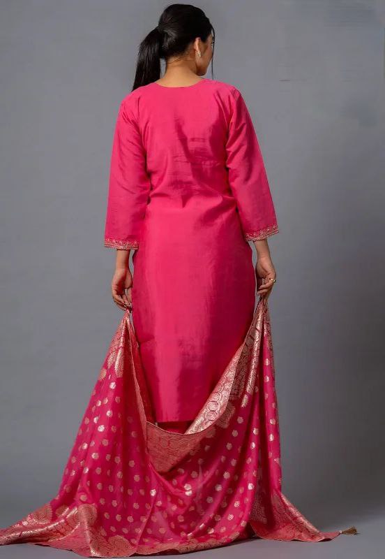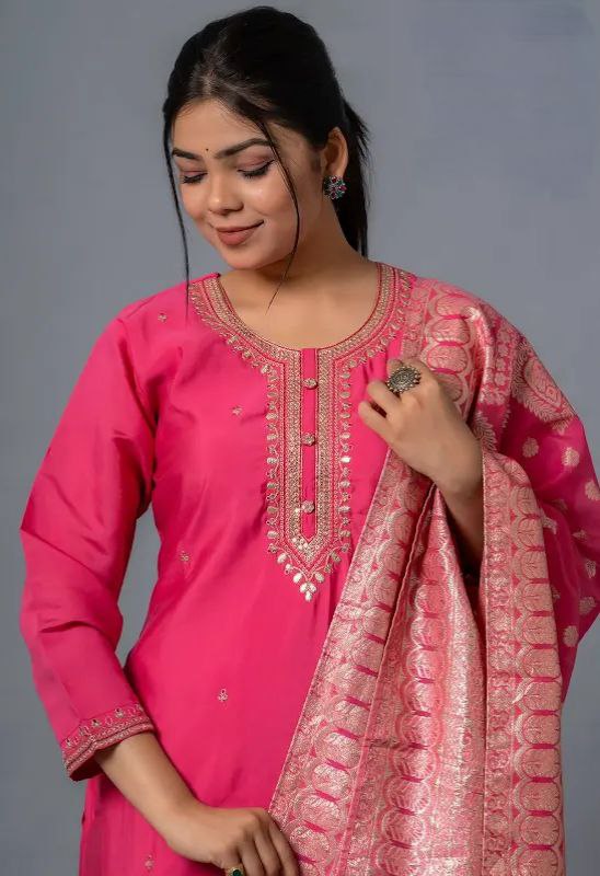Women's Rani Viscose Chanderi Bsy Viscose With Sequence Coding Embroidery Work Rounk Nack Anarkali Set
