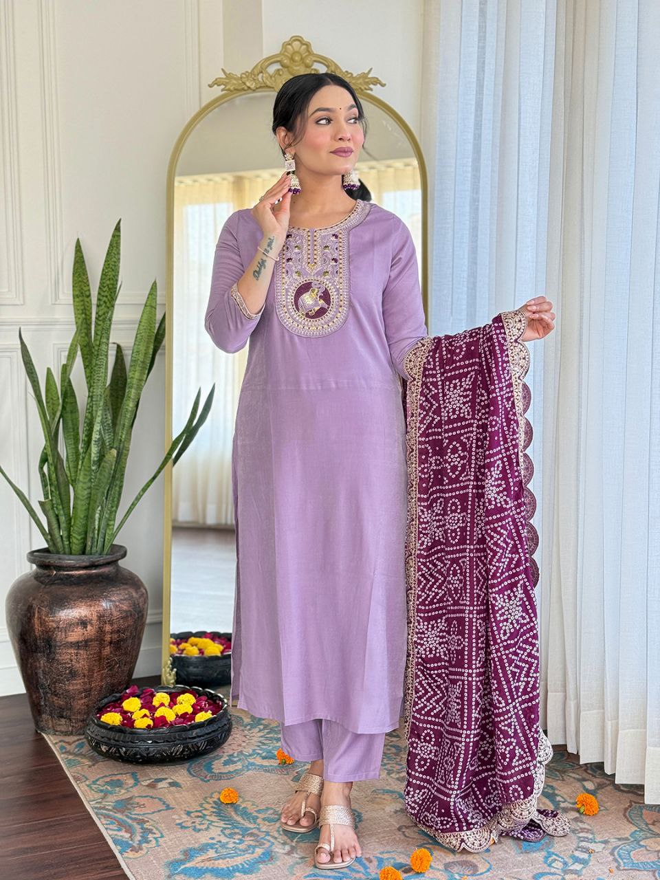 Work :Viscose Chanderi With Sequence Coding Embroidery Work