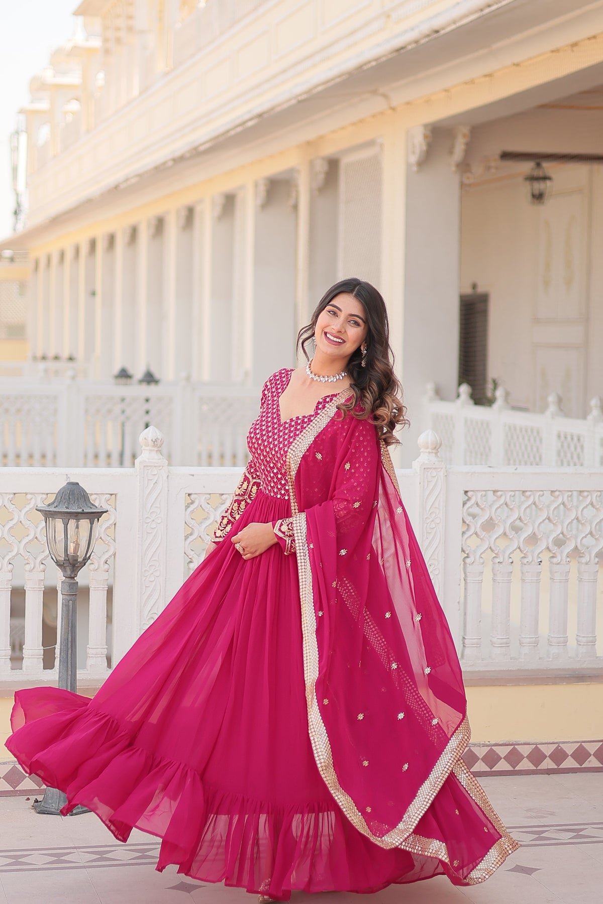 This Beautiful Faux Blooming Anarkali Dress Is The Epitome Of Elegance, Perfect For Festivals And Special Occasions. Get This Beautiful Faux Blooming Sequins With Zari Embroidered Anarkali Sets Online At Trendia.Co - The Best Online Store For Women's Anarkali Sets.