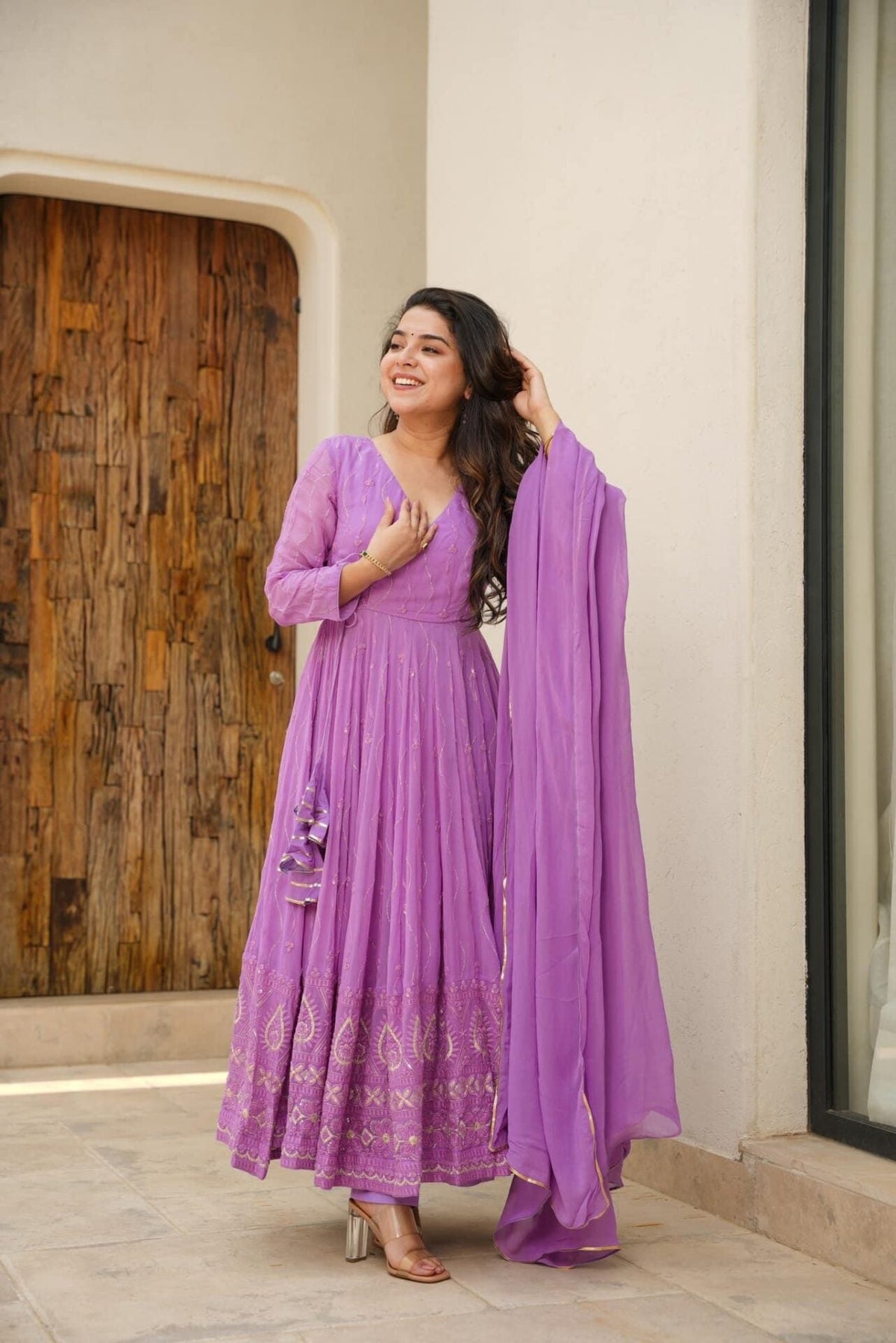 Georgette Lavender Embroidered Anarkali Suit