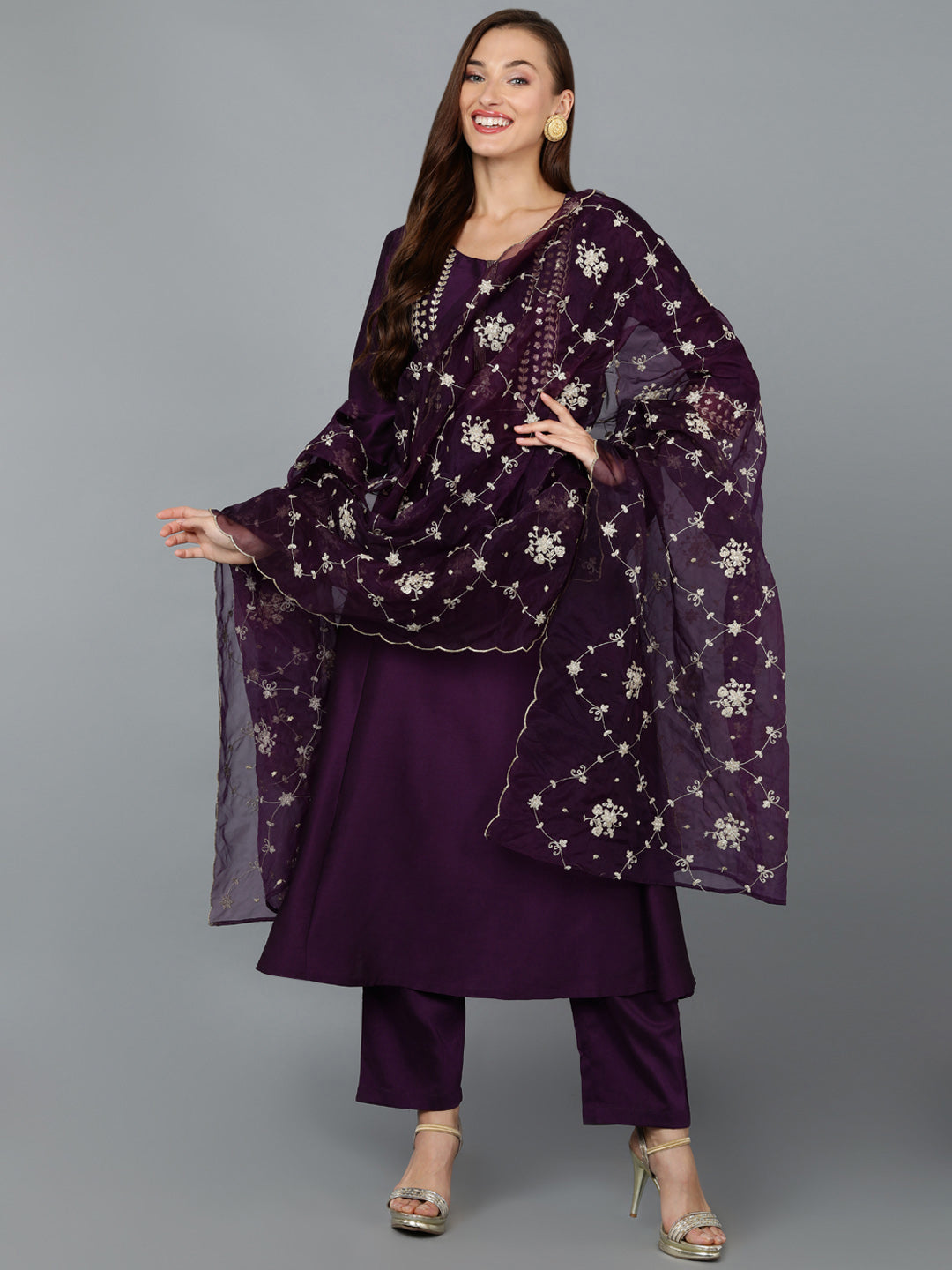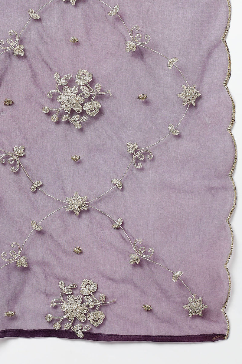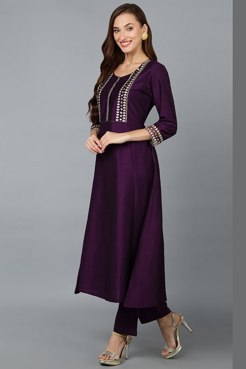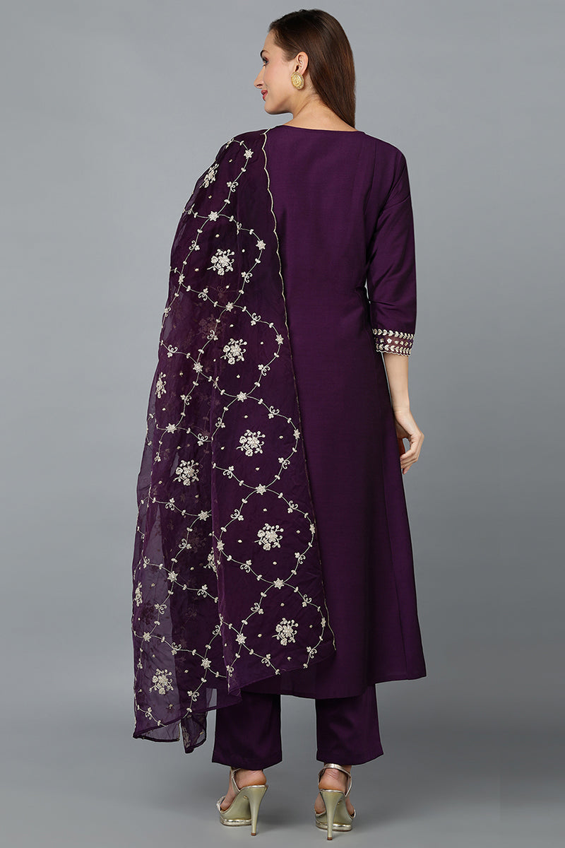 Purple Chinon Embroidered Anarkali Festive Wear Suit Set