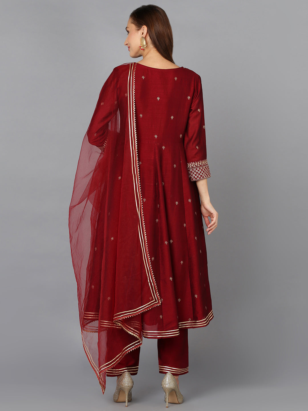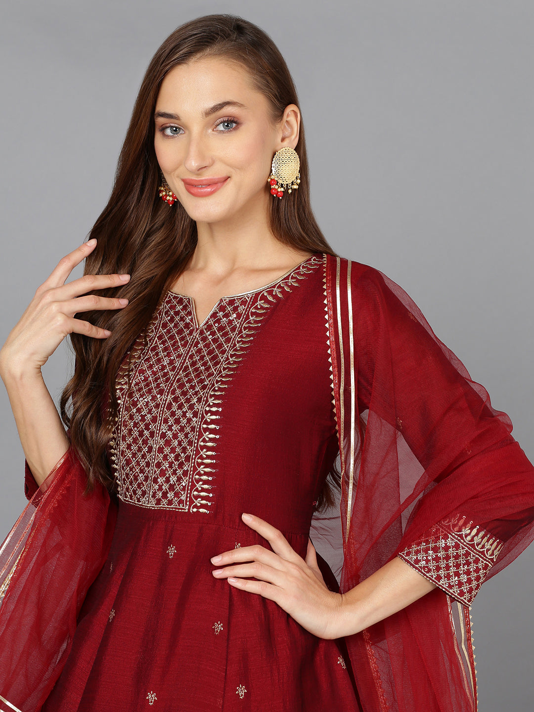 Women's Silk Blend Maroon Anarkali Festive Wear Suit Set