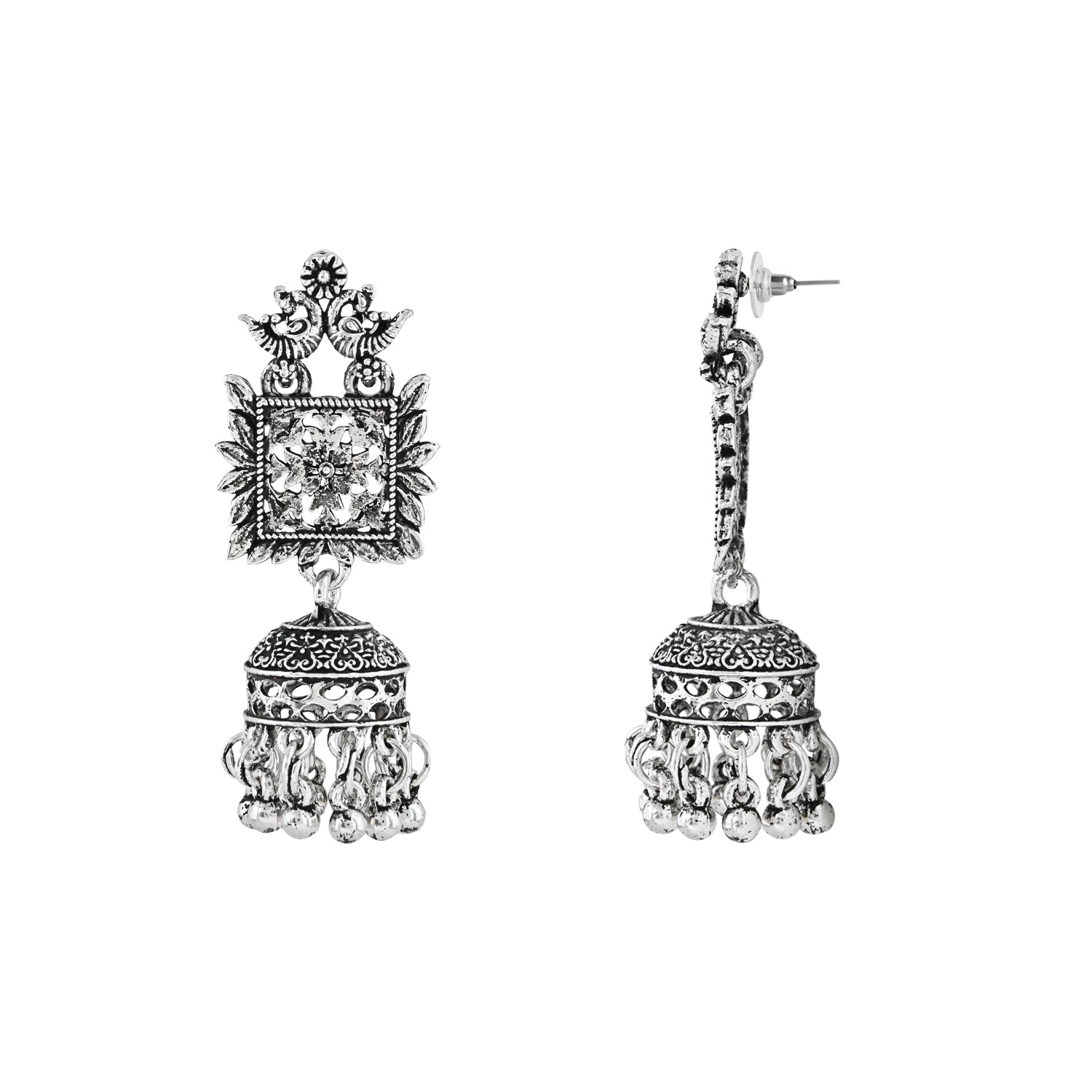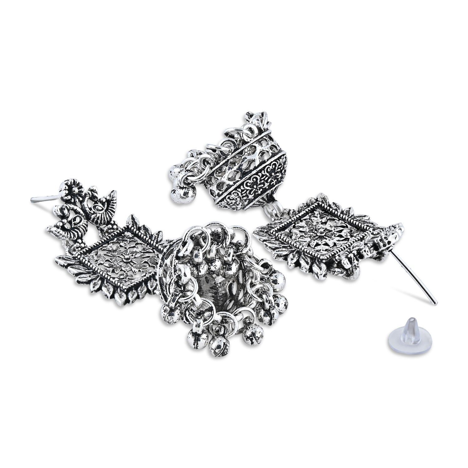 Elevate Your Accessory Collection With Our Silver Oxidized Tribal Jhumka Earrings, A Perfect Fusion Of Traditional Elegance And Contemporary Style. These Earrings Are Meticulously Crafted For Women And Girls Who Appreciate The Allure Of Handcrafted Jewelry. Enhance Your Personal Style With These Earrings That Not Only Adorn You But Also Reflect Your Fine Taste In Accessories. The Perfect Embodiment Of Charm And Sophistication, These Earrings Are A Testament To The Enduring Beauty Of Handcrafted Jewelry. Discover A World Of Elegance And Artistry With Our Silver Oxidized Tribal Jhumka Earrings.