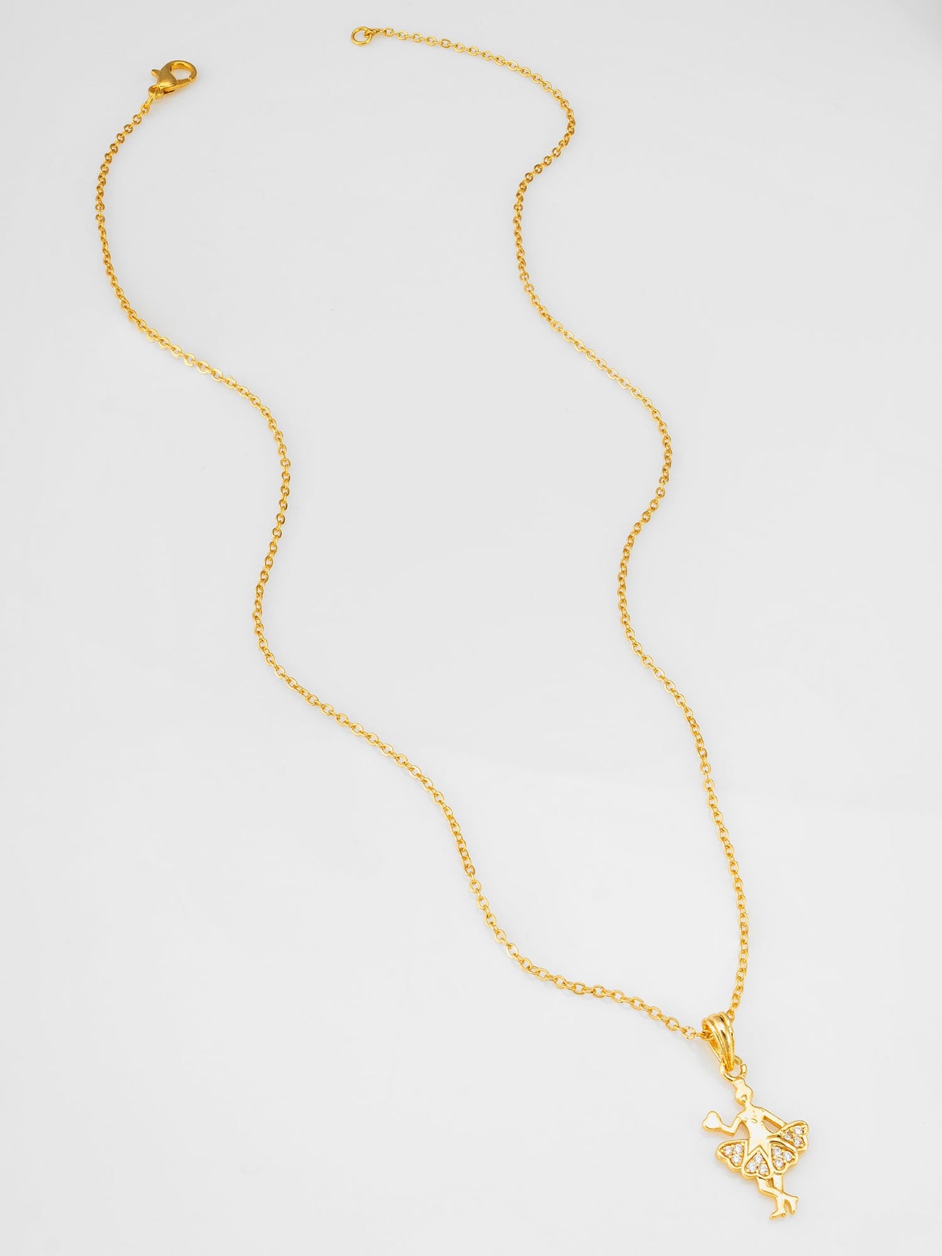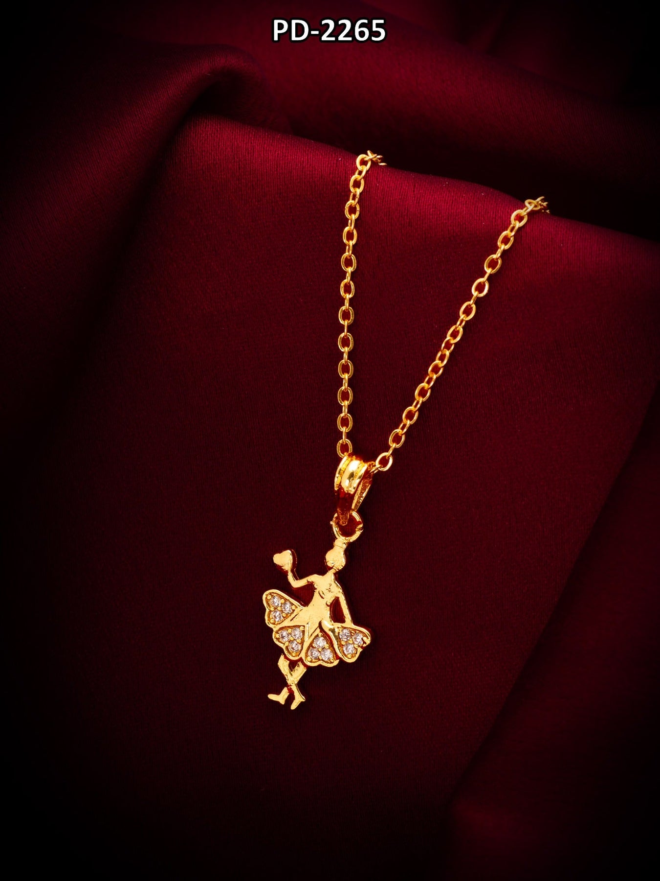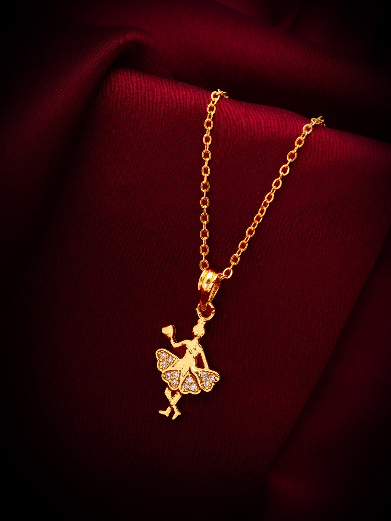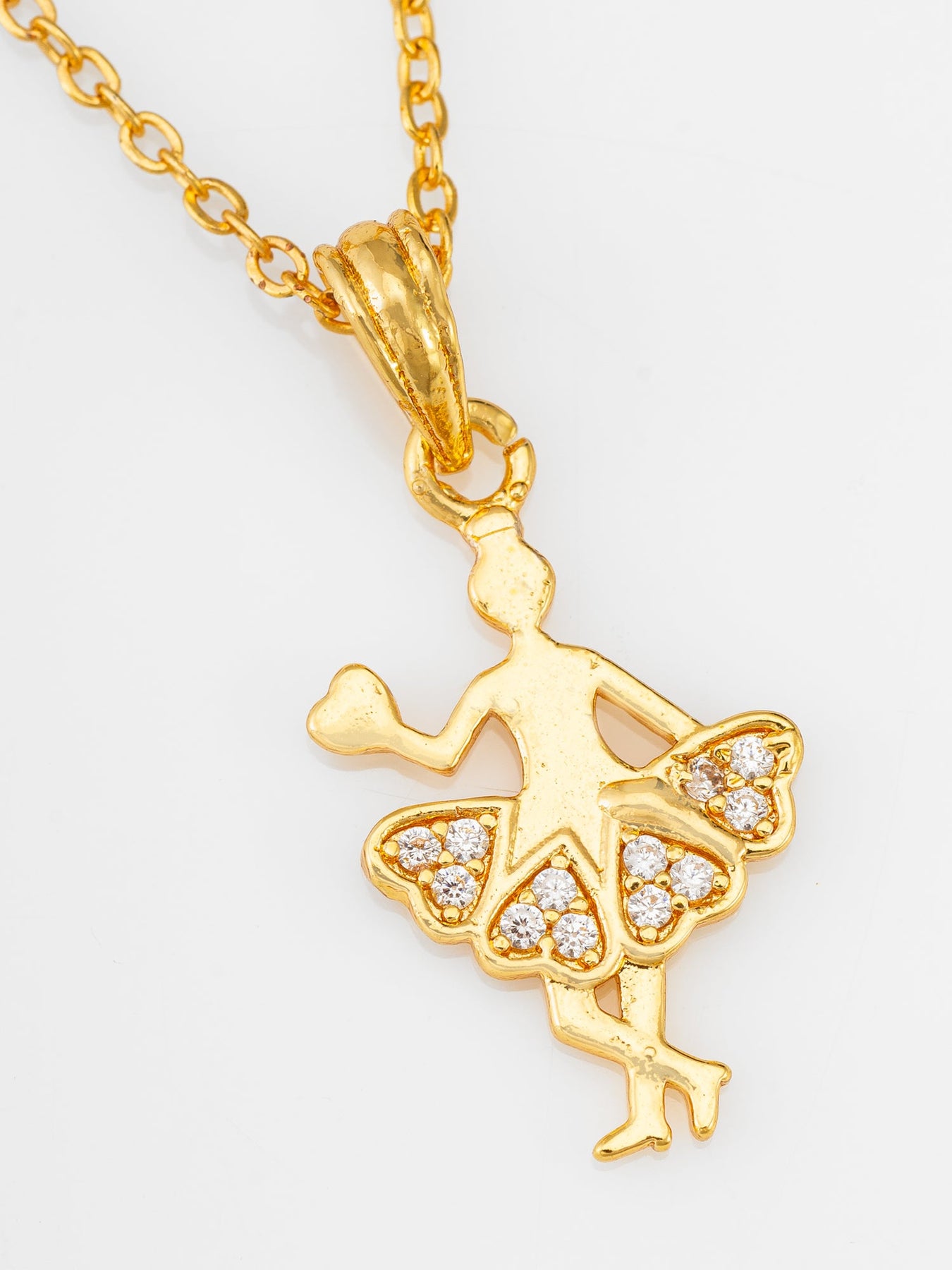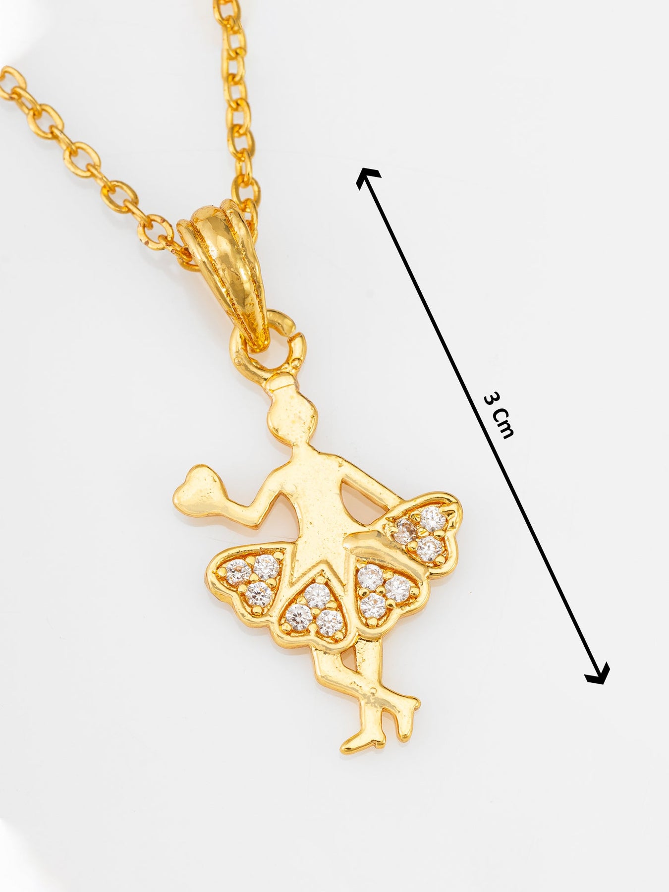 This Exquisite Gold Plated Pendent With Chain Features A Delicate Small Doll Charm, Adding A Touch Of Elegance And Whimsy To Any Outfit. The Dancing Doll Motif Adds A Playful And Enchanting Element To The Overall Design, Making This Necklace A Standout Piece In Any Jewelry Collection.