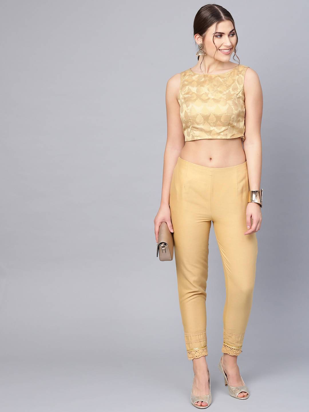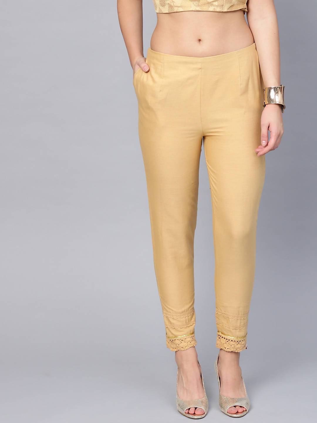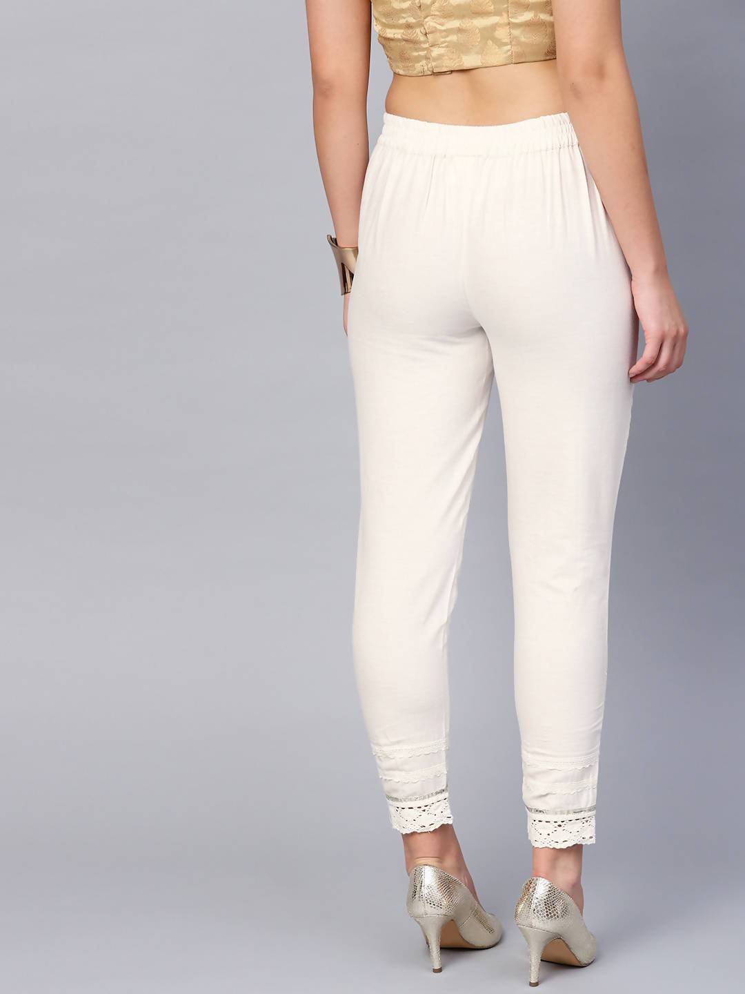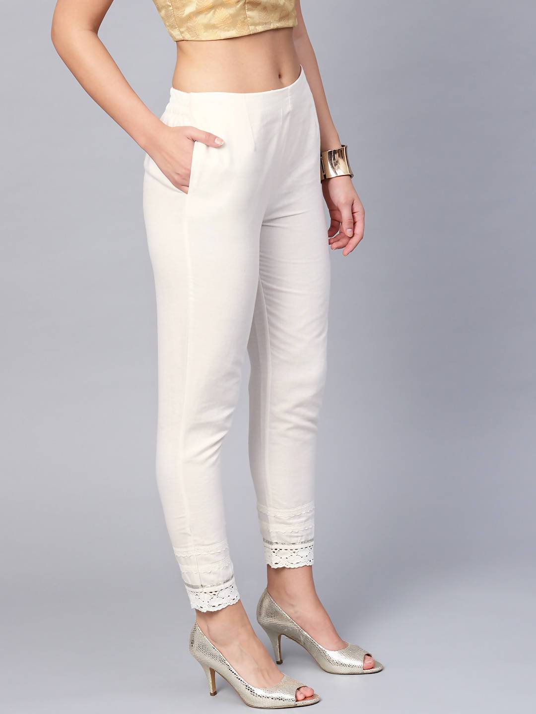 Description :Juniper Black Cotton Slub Solid Straight Pants with Lace Embellished Hem & Side Pocket Color :BLACKFabric :Cotton FlexPrint :SolidPrint & Pattern :SolidHemline :Slim FitHemline :36Shape :Slim FitClosure :ElasticMaterial Transperency :OpaqueOccasion :DailyWash care :Machine Wash