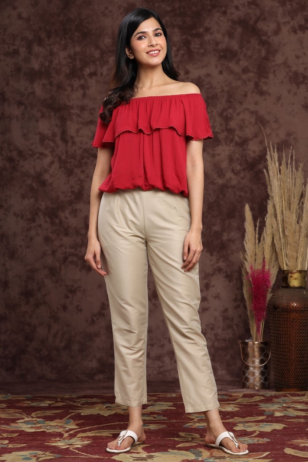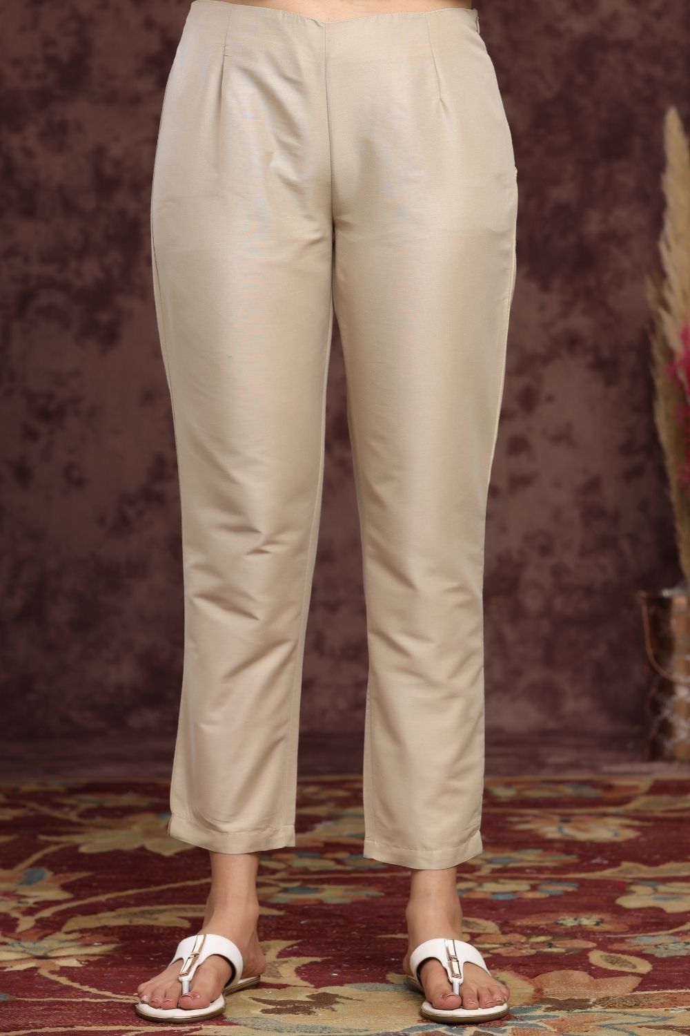 PRODUCT DESCRIPTION :Juniper Sandgrey Poly Silk Solid Straight Pants