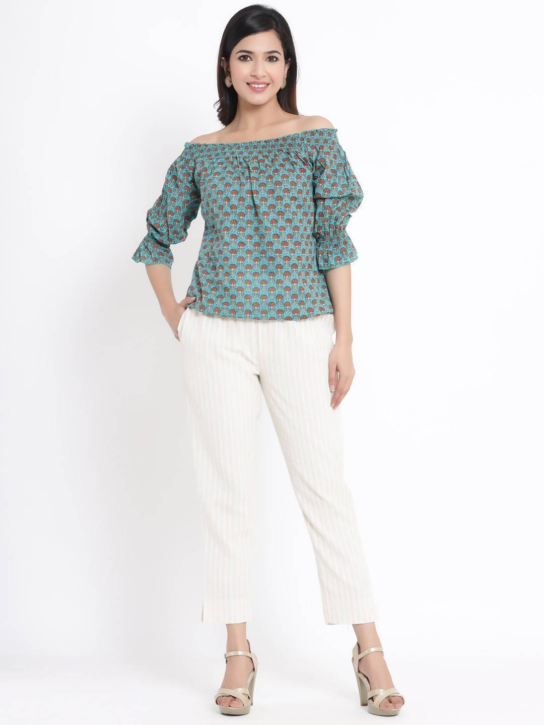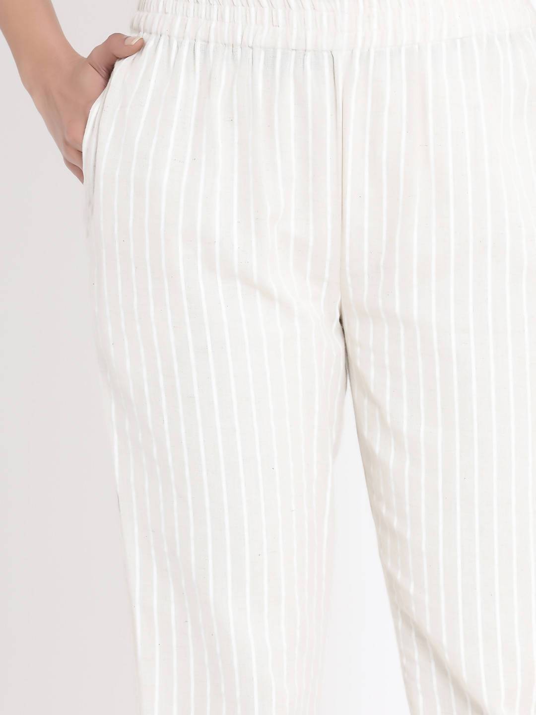 Description :Juniper Natural Cotton Flex Striped Straight Pant with Side Pocket & Scrunchie