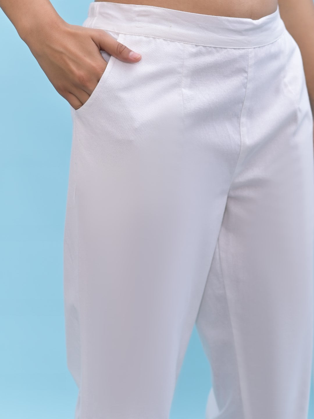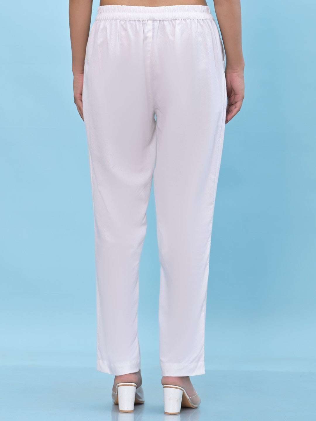 Women's White Cotton Solid Trouser