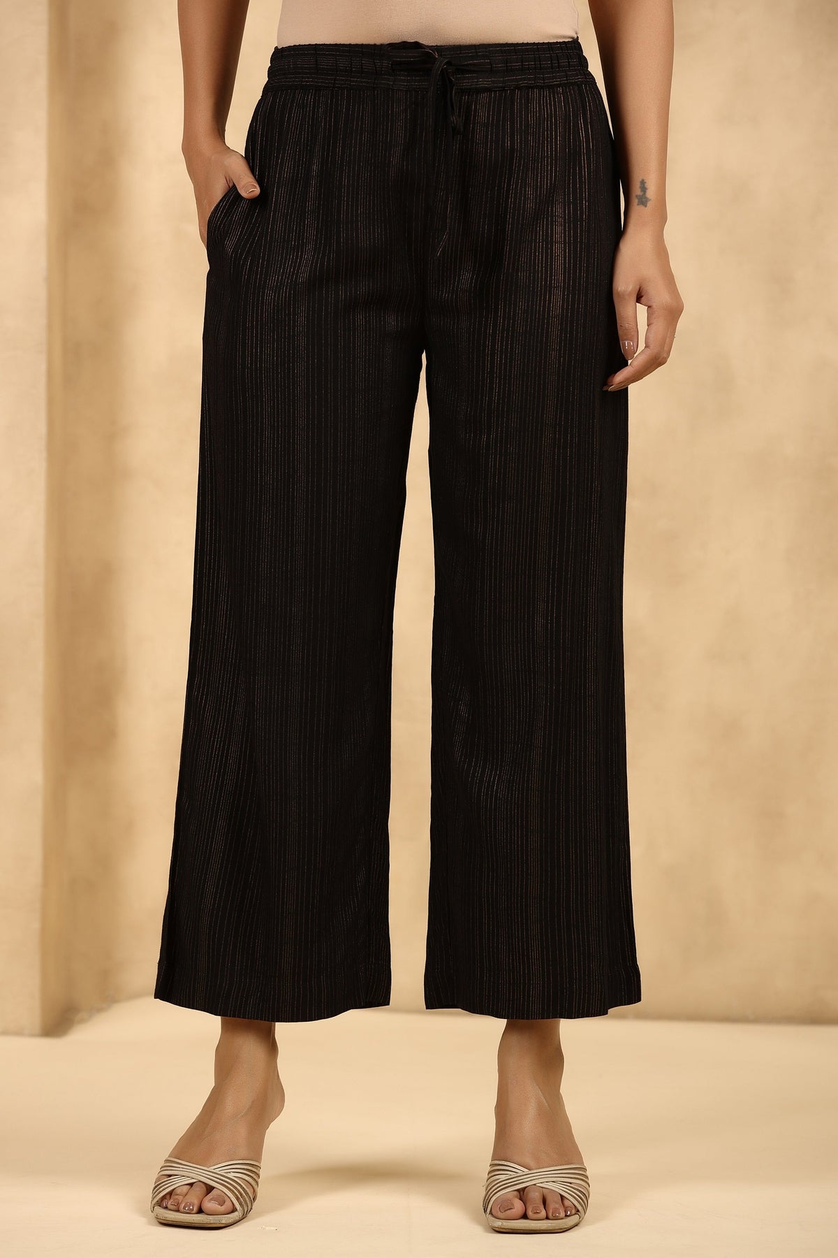 Women's Black Rayon Gold Printed Wide Leg Palazzo