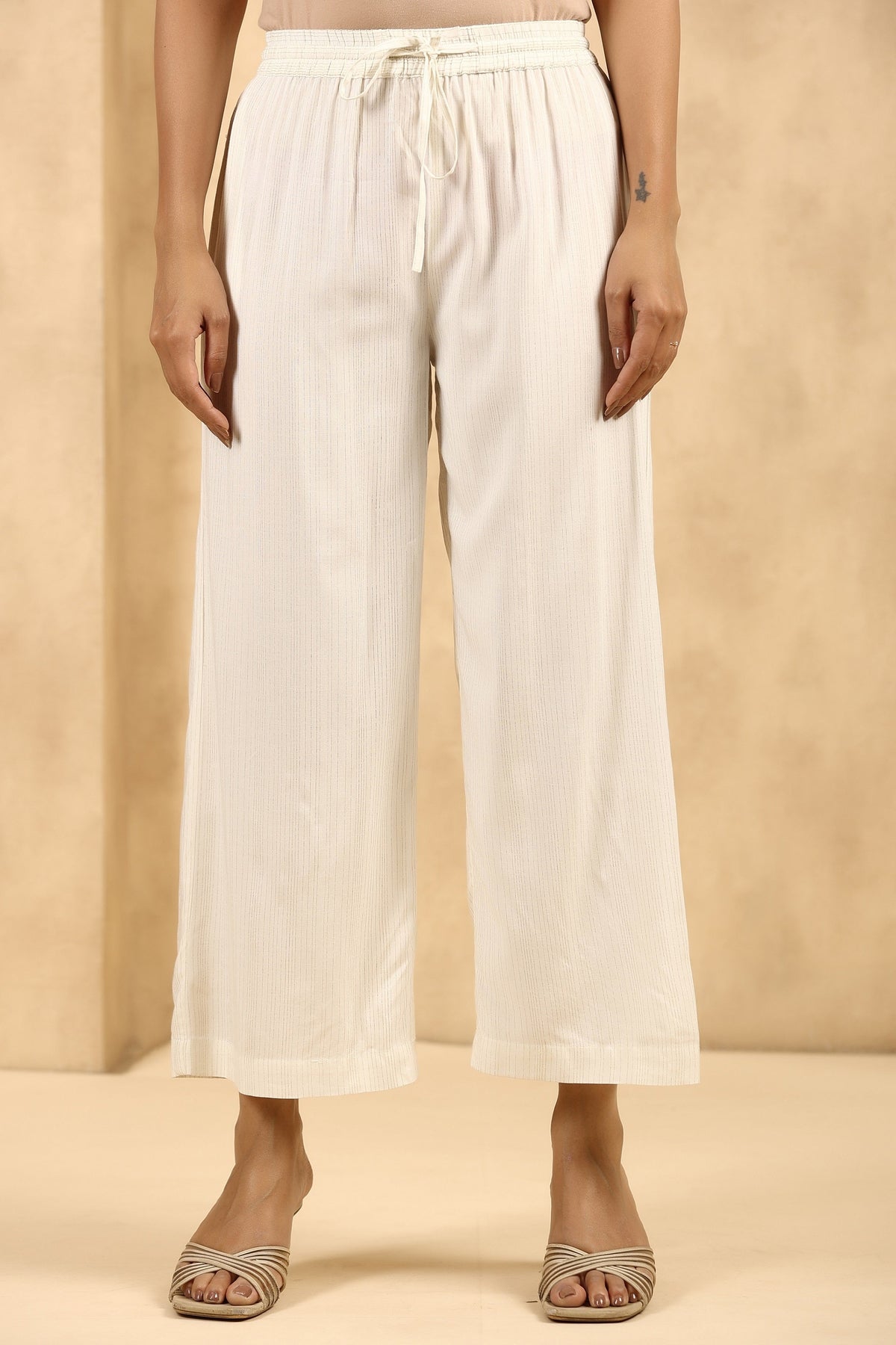 Juniper Women's Off-White Rayon Gold Printed Wide Leg Palazzo