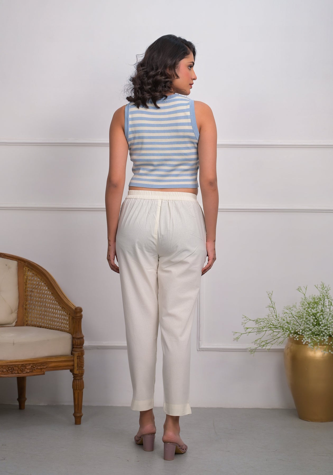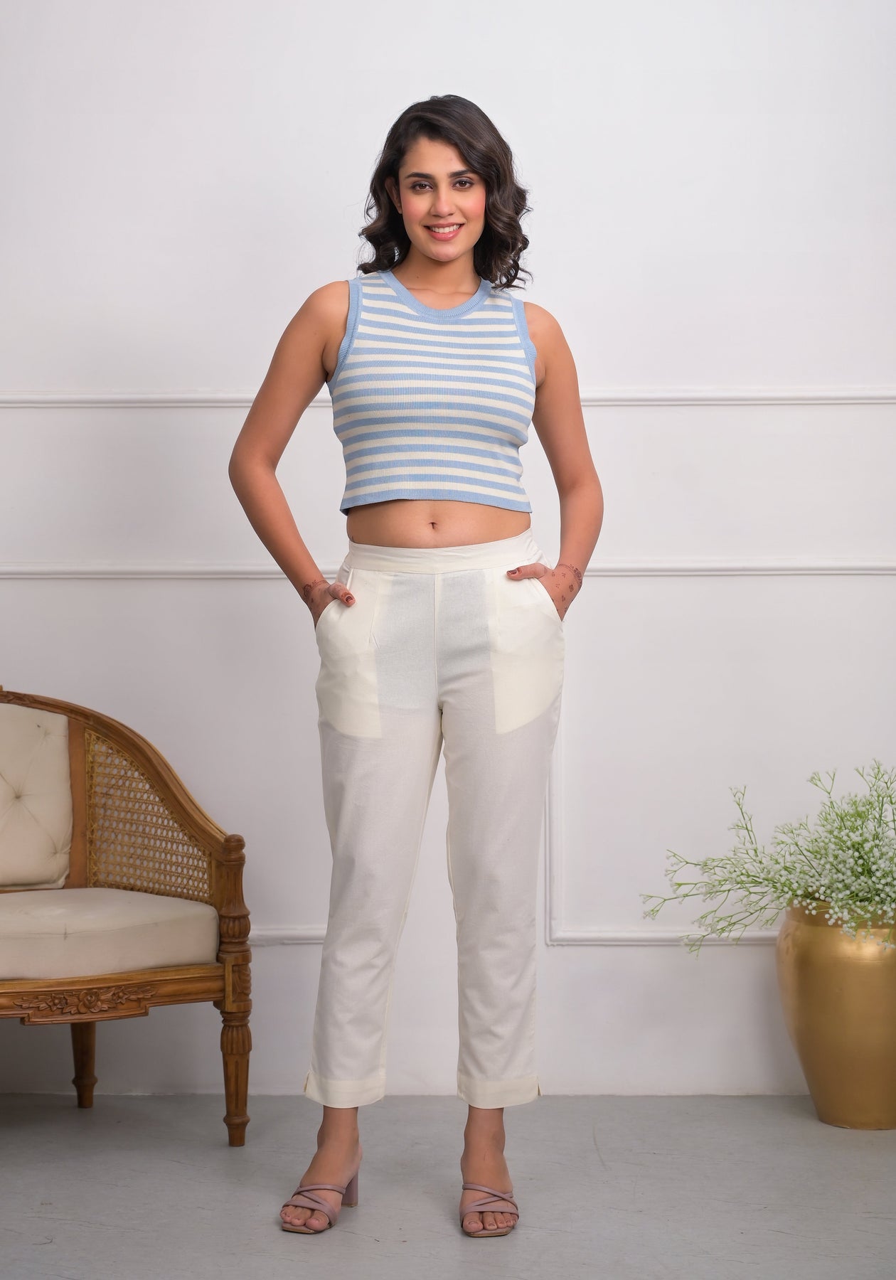 Elevate Your Casual Wardrobe With This Juniper Cotton Pants Designed For Women. They Combine Comfort And Style With A Partially Elasticated Waistband That Ensures A Perfect Fit. The Pants Feature Two Side Pockets, Adding Practicality Without Compromising On Aesthetics. Ideal For Everyday Wear.