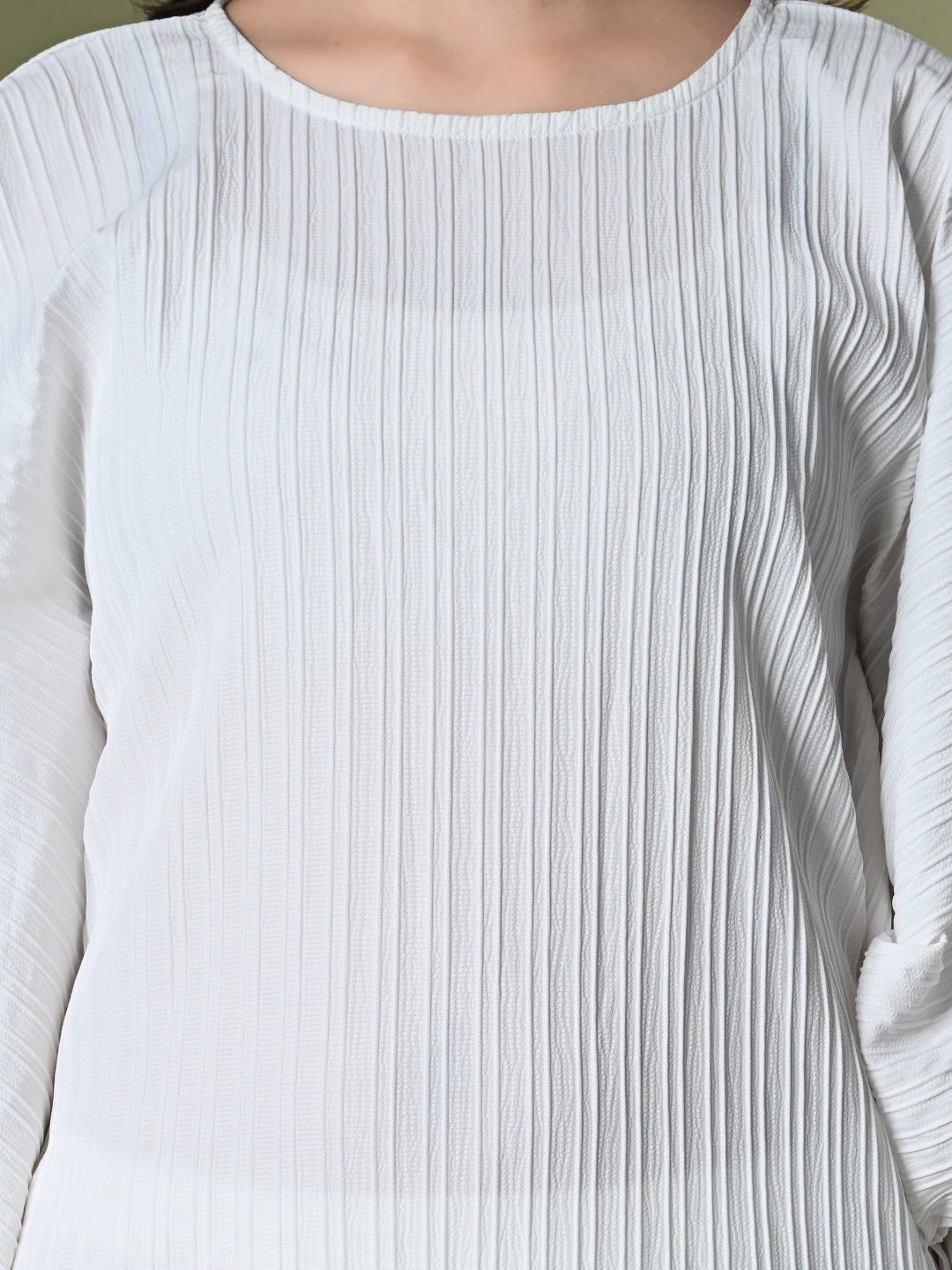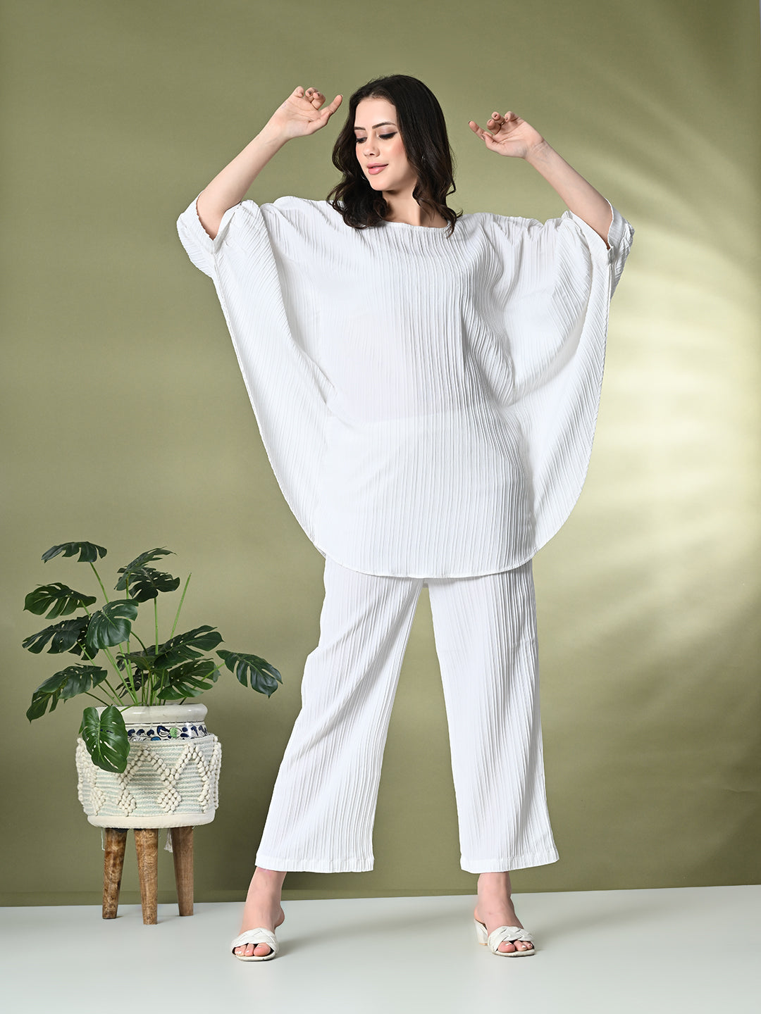 Women Self Design Round Neck Kaftan Style Co-Ord Set In White Colour