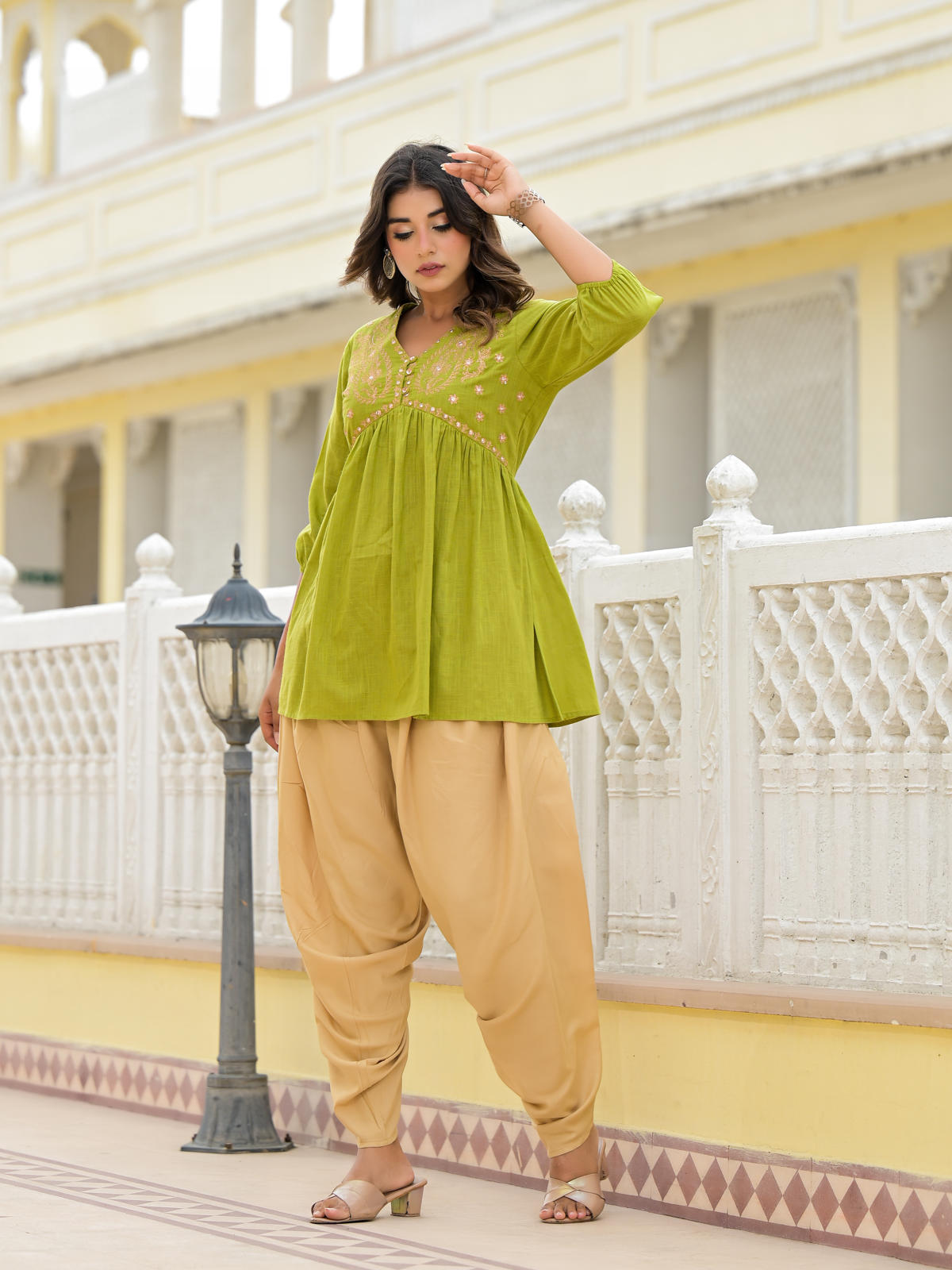Pack Contains :1 Tunic, 1 Dhoti Pant