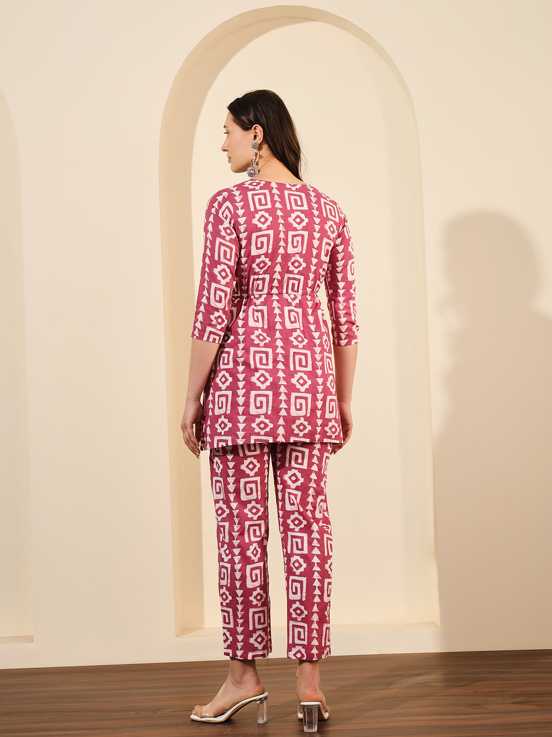 Mauve And White Geometric Printed Indo-Western Co-Ord Set
