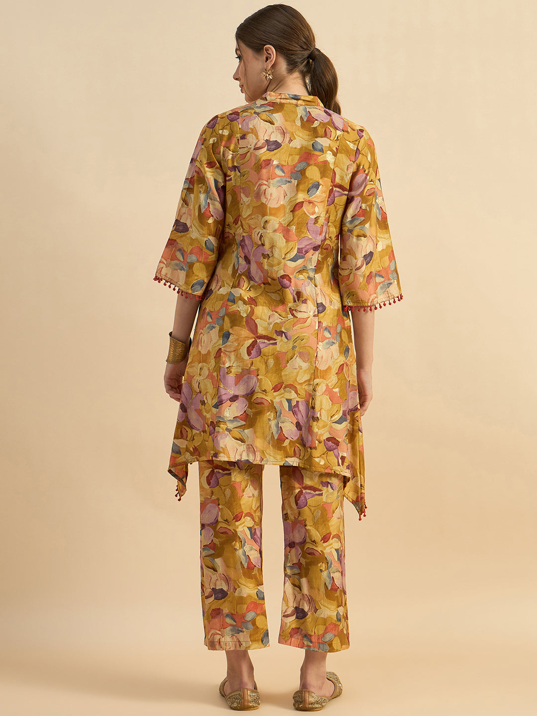 Women's Yellow Silk Blend Floral Printed Co-Ord Set - Azira
