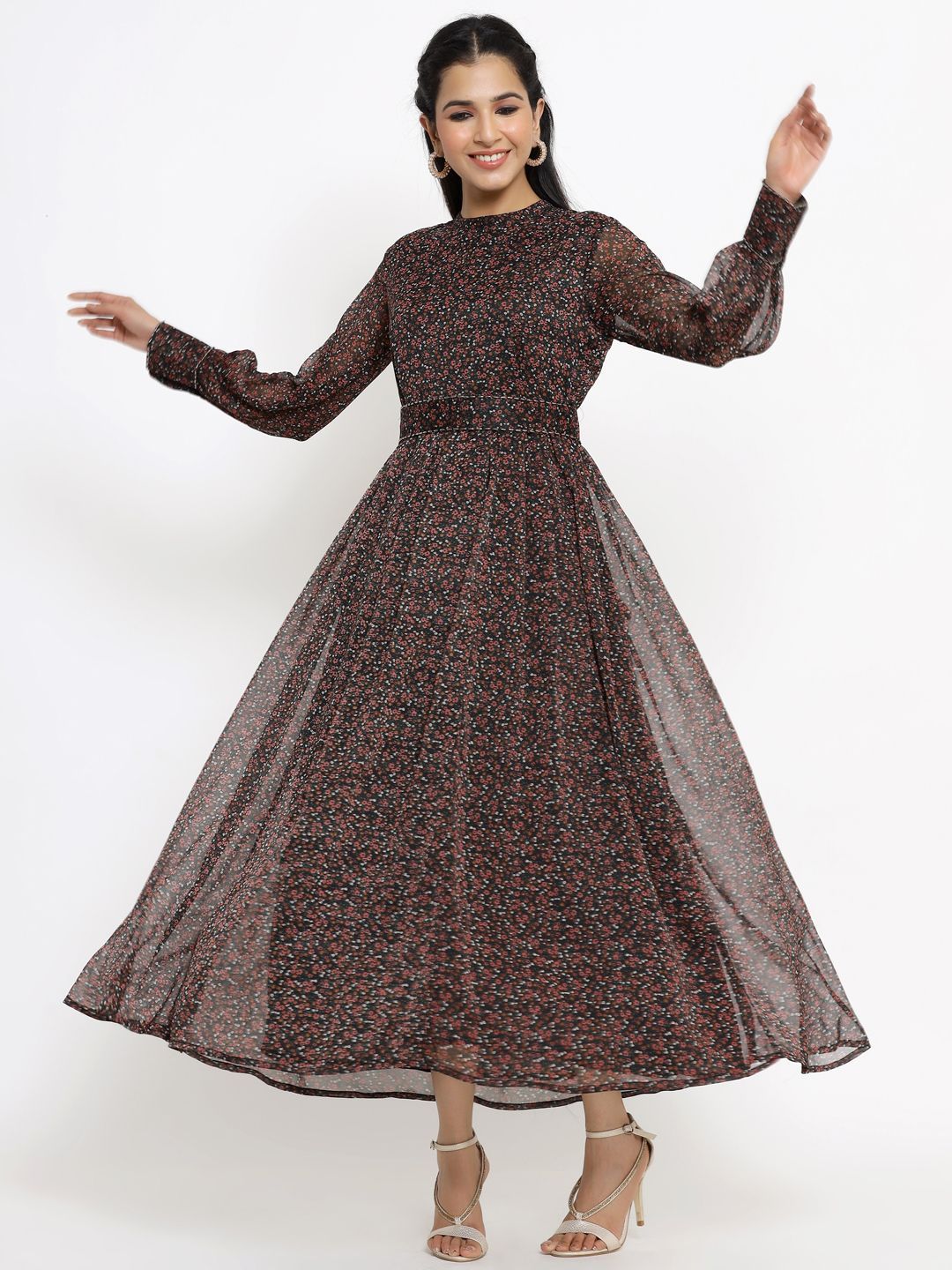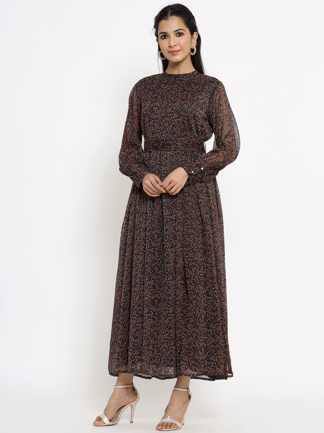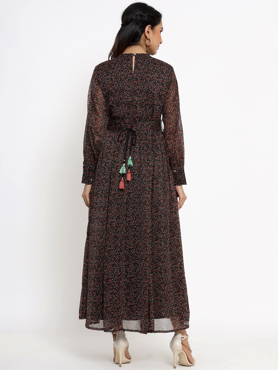 meta_tag_description :Juniper Black Alphin Chiffon Flared Printed Dress With Tie-up Blet