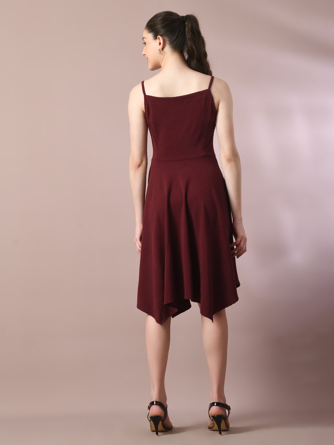 Women's Maroon Solid Shoulder Straps Fit And Flare Party Dress
