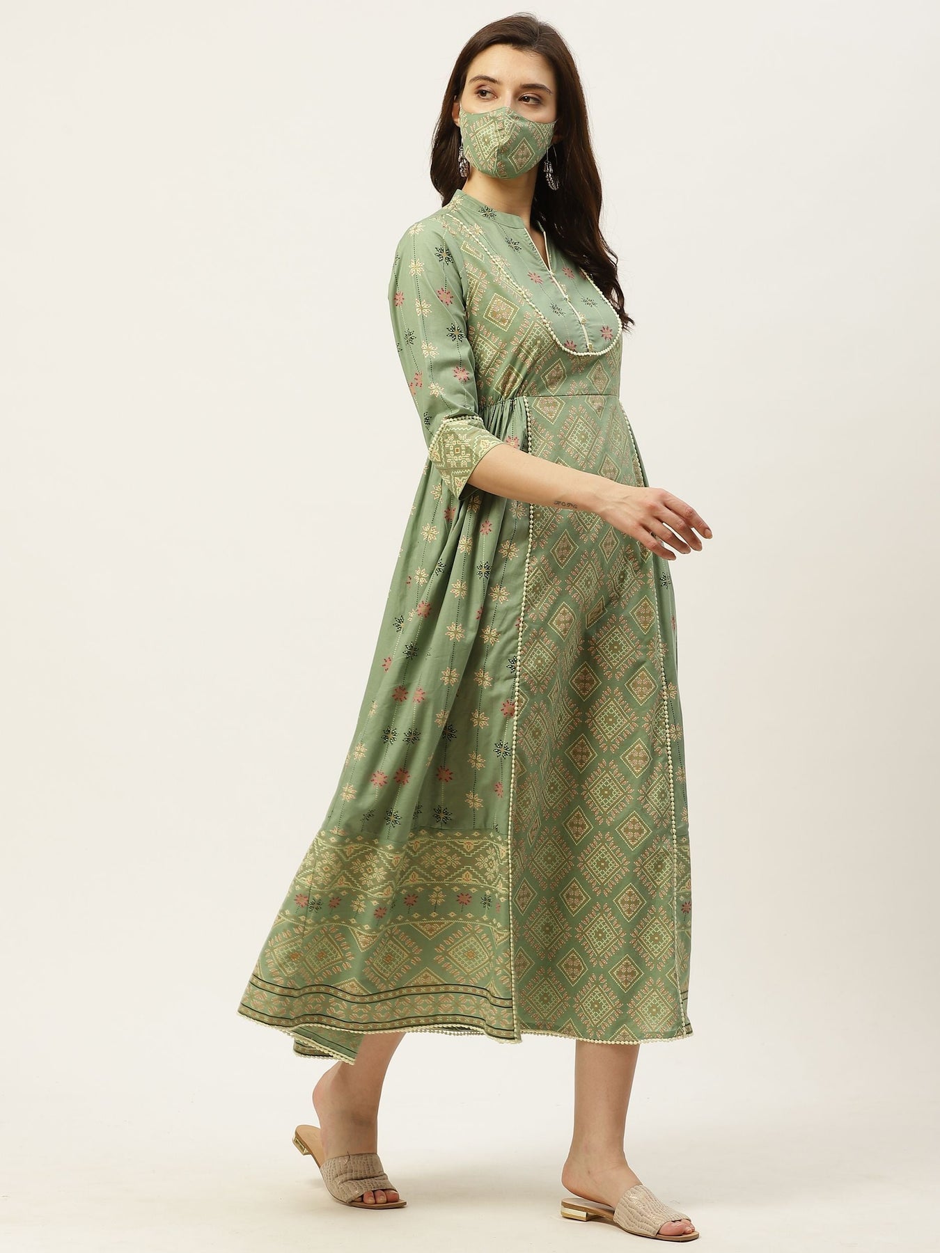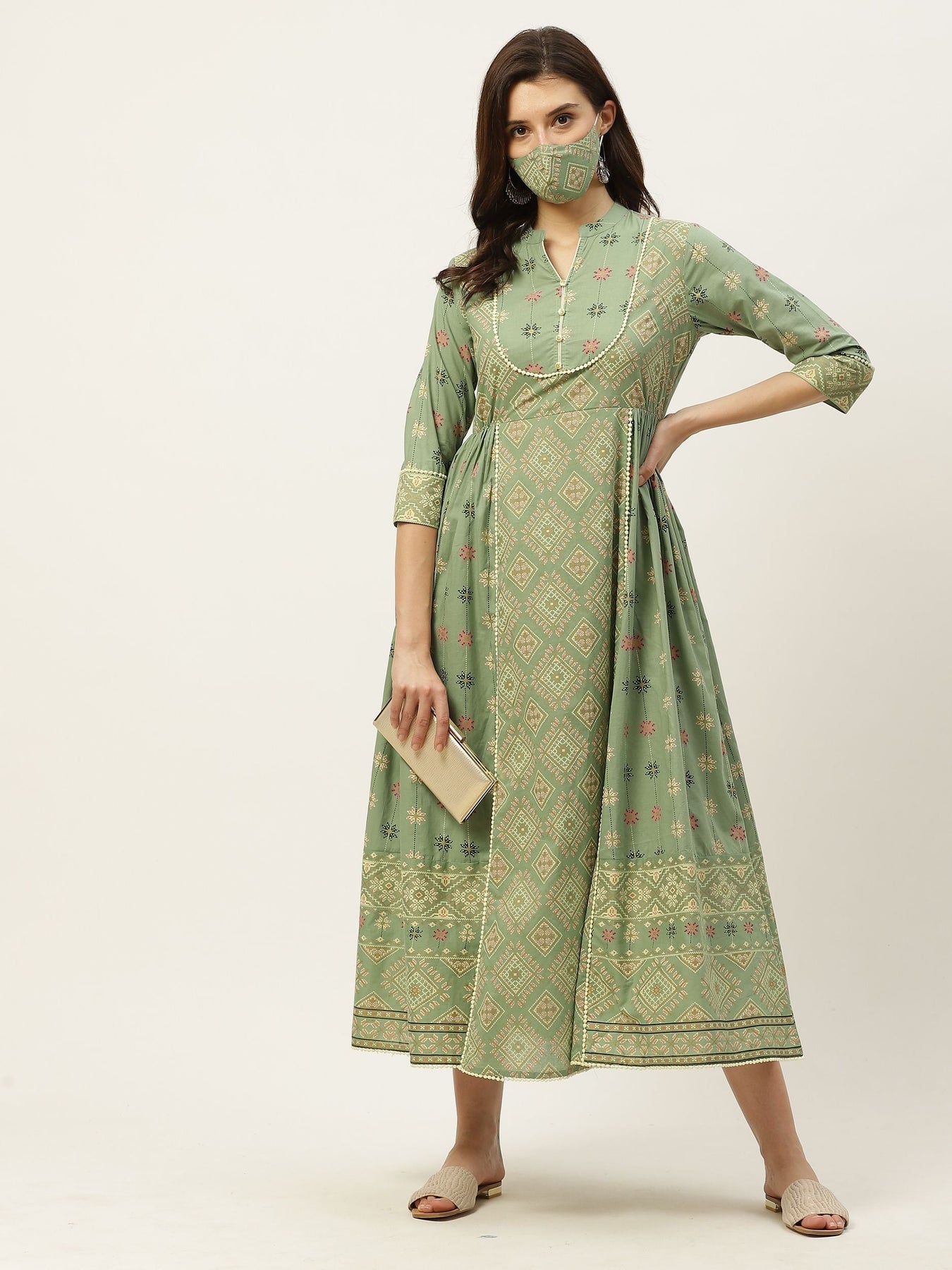 meta_tag_description :Juniper Cambric Mexican Print Flared Kurta Dress With Mask