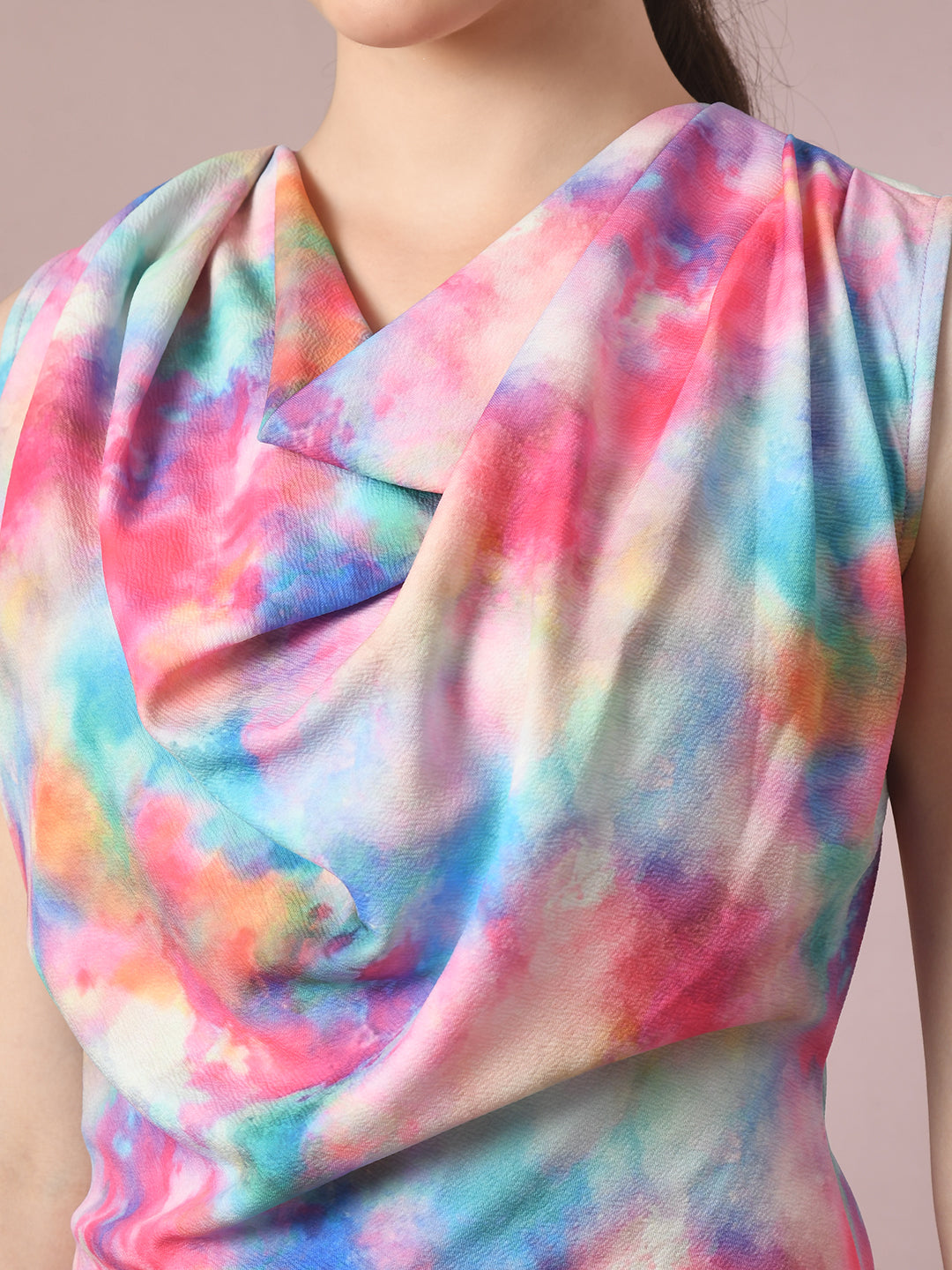 Women Multi Printed Cowl Neck Bodycon Party Dress