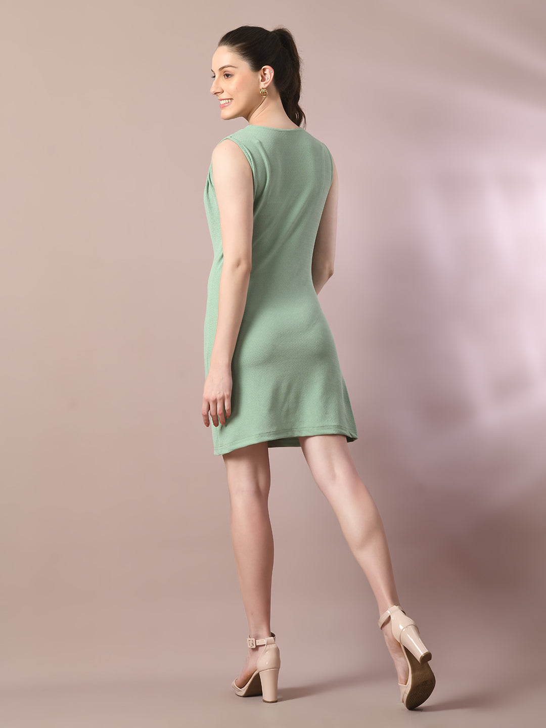 Women Sea Green Solid Cowl Neck Bodycon Party Dress