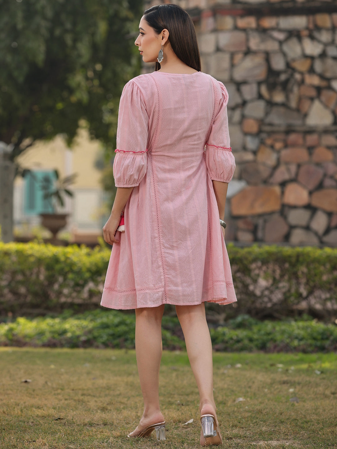 Juniper Women'S Pink Cotton Dobby Embroidered Flared Dress Length :Midi Shape :Flare fit Fabric :Cotton Dobby Color :Pink Pattern :Embroidery Neck Line :Round Neck Wash Care :Hand Wash Weight(G) :300