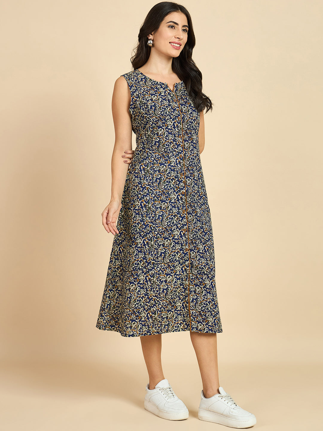 Top Details : Length :46Inch Shape :A-Line Fabric :Cotton Color :Blue Neck Line :V Neck Closure :Buttons