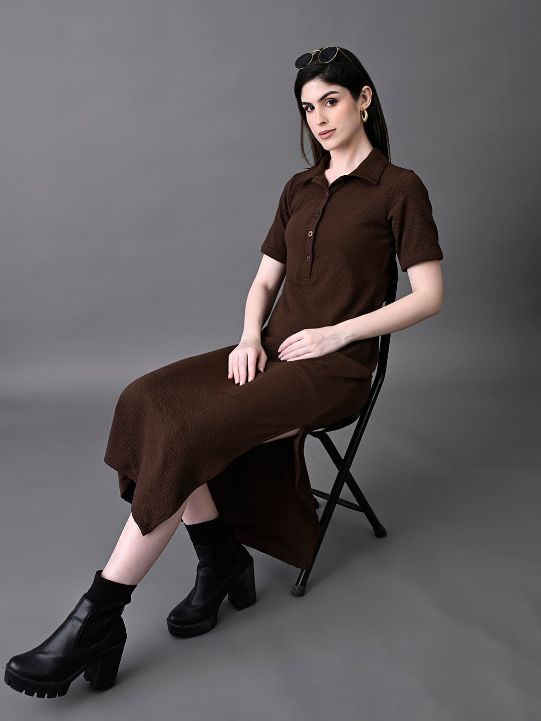 Top Details : Fabric :Polyster Color :Brown Shape :Relaxed Work :Solid/Plain Neck Line :Shirt Collar Length :51