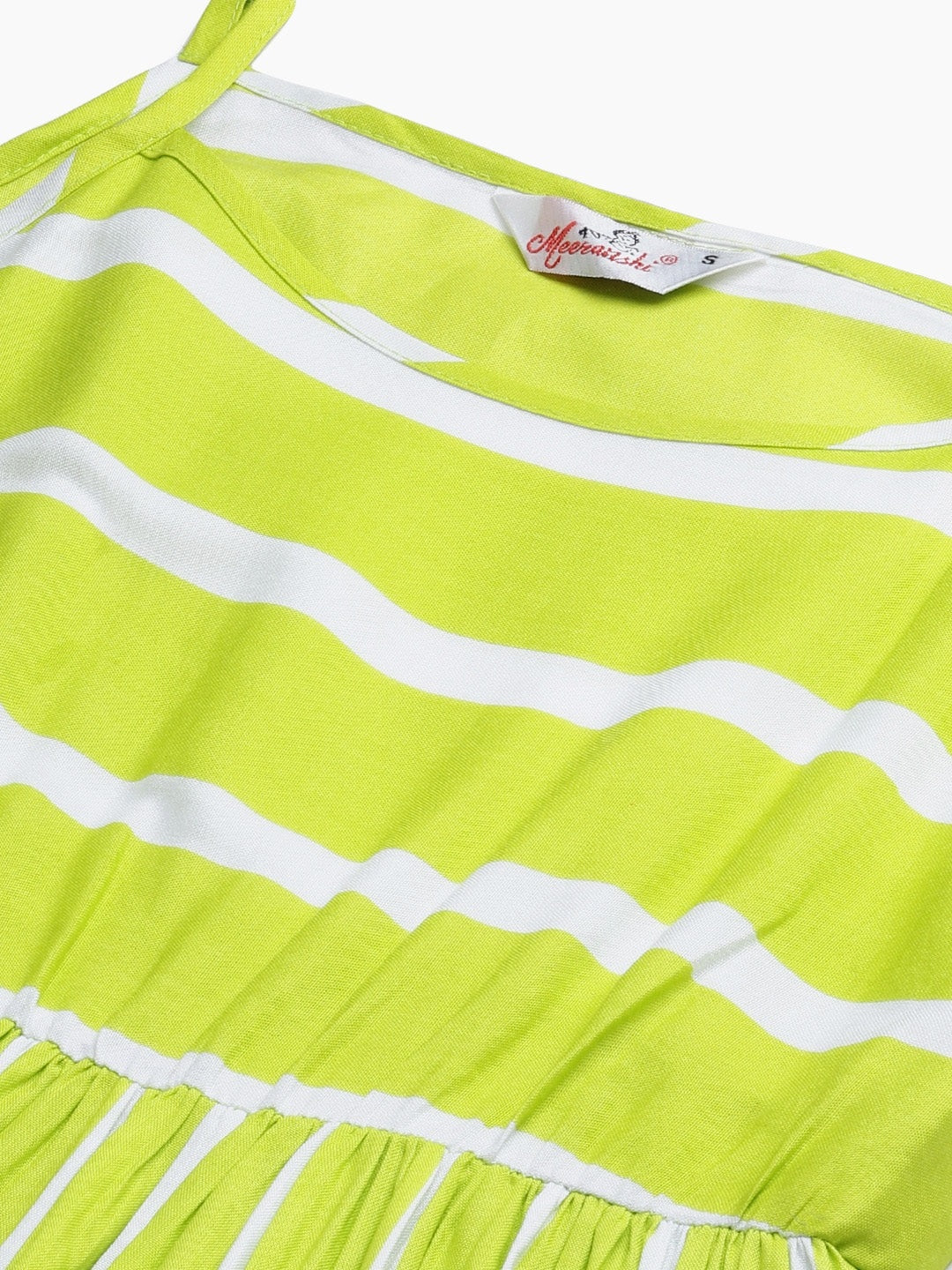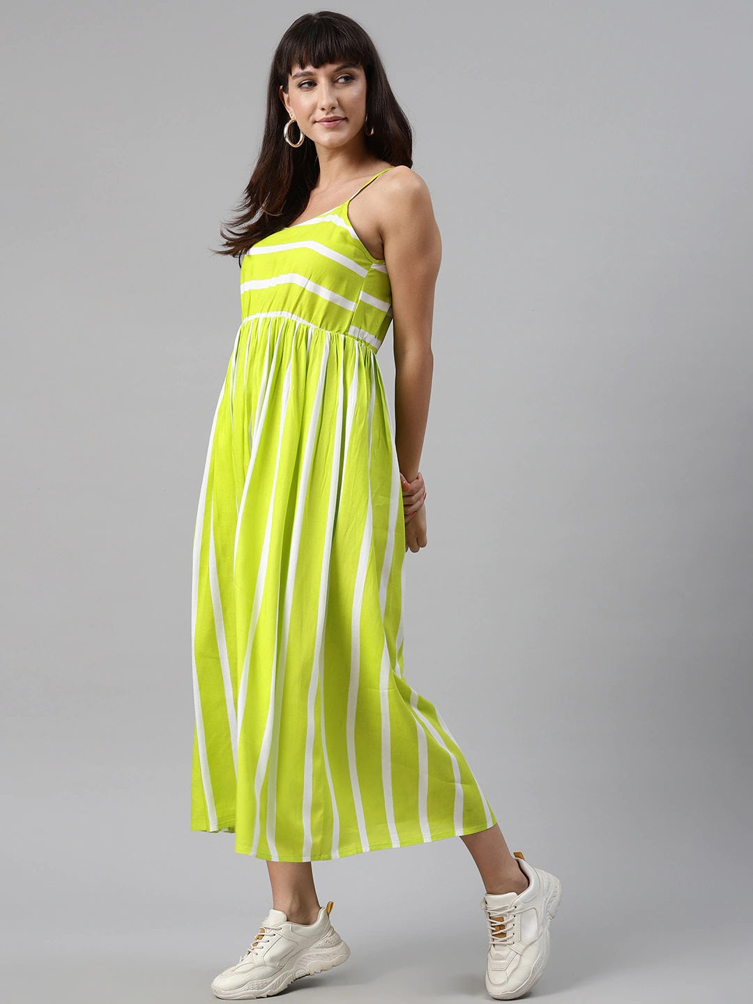 Neon Green Striped Printed Midi Dress