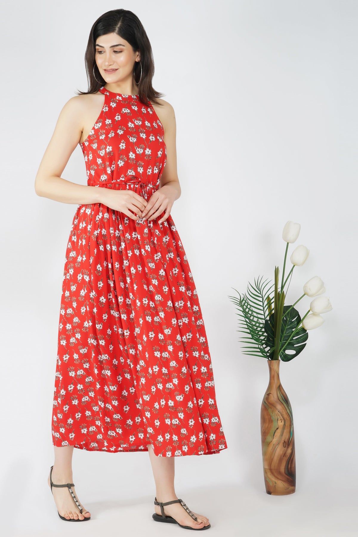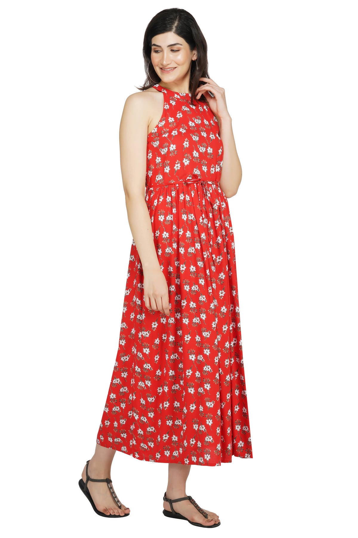 Top Details : Length :46Inches Shape :A-Line Fabric :Rayon Color :Red Work/Pattern :Printed Neck Line :Round