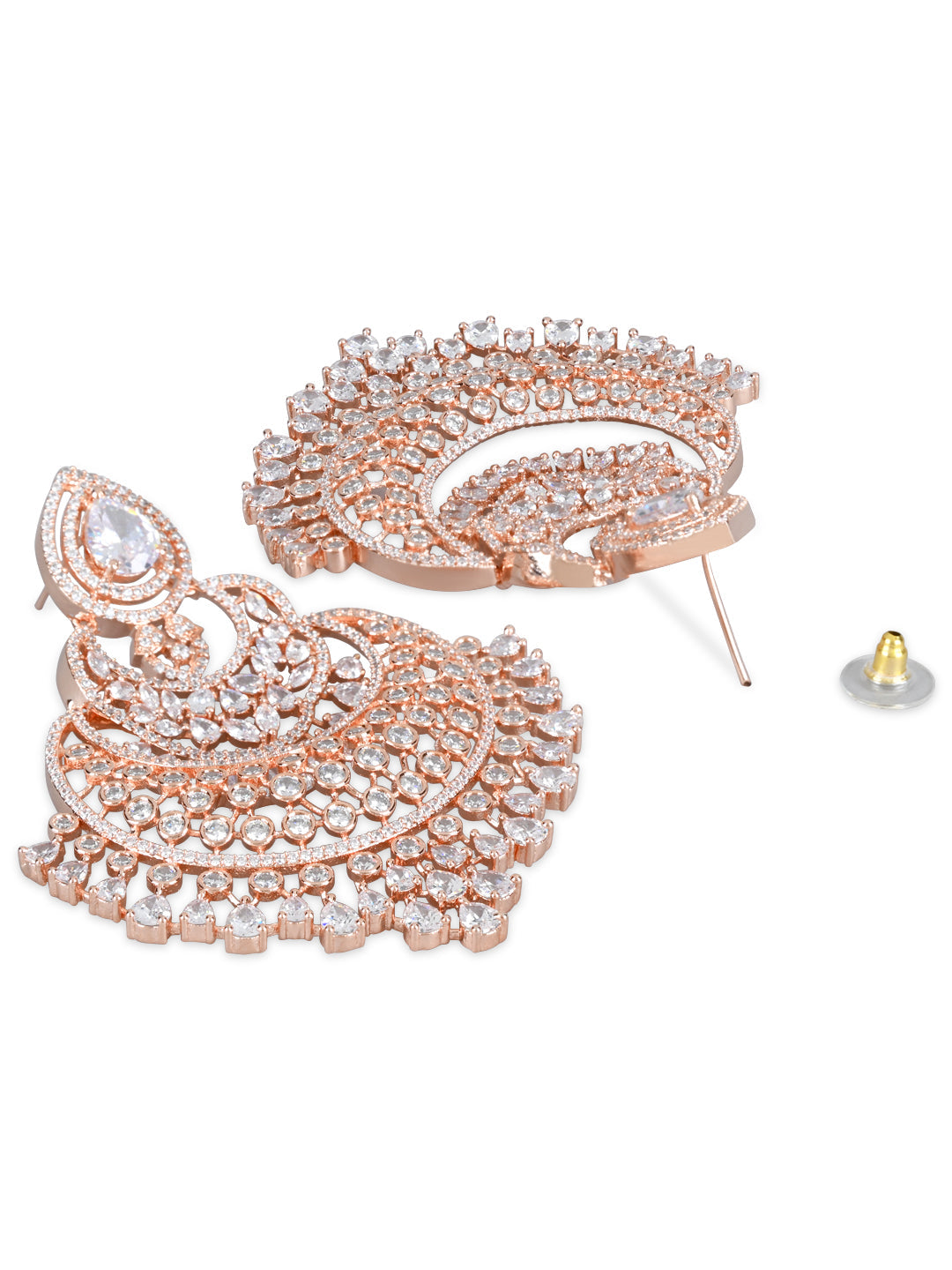 Women's Rosegold Plated Glittering Crystal Ad Stone Studs Earrings (E3071Zg)