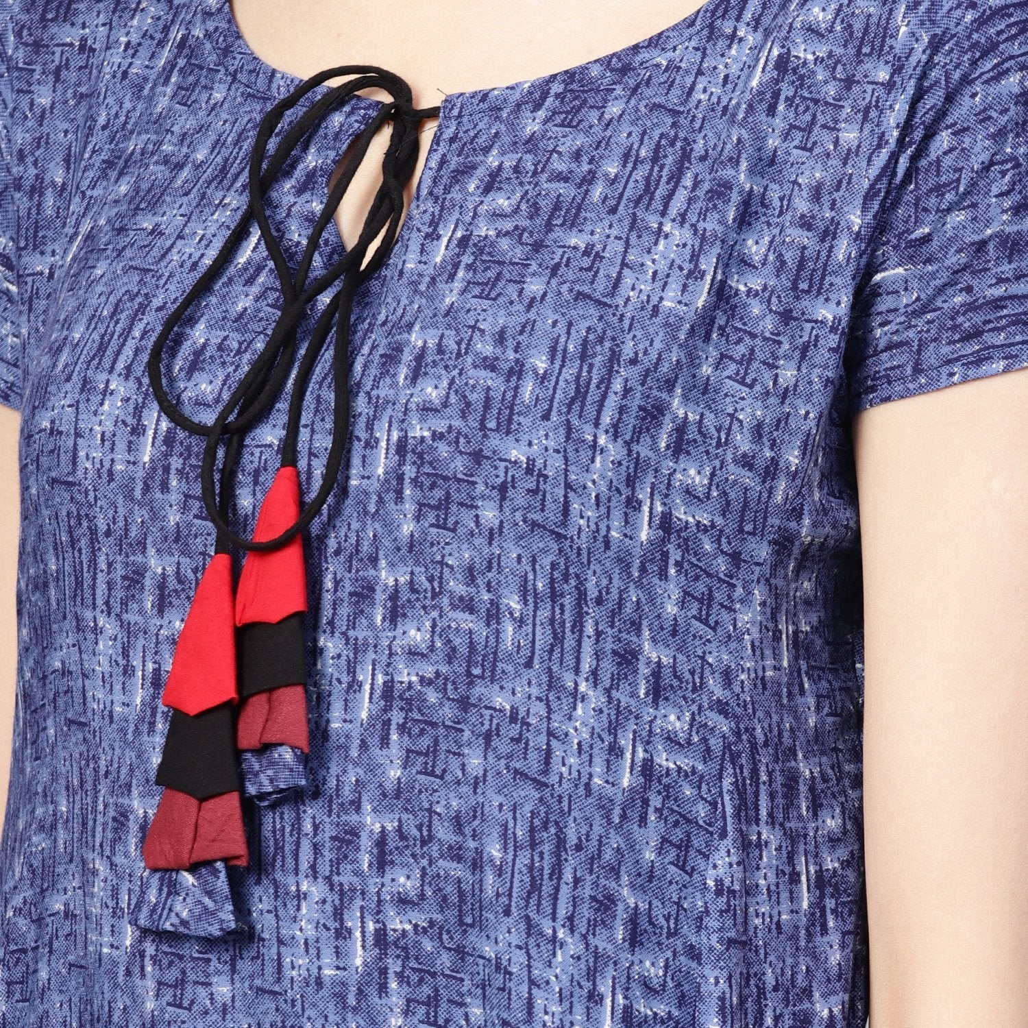 Women's Blue Cotton Printed Short Sleeve Round Neck Casual Kurta Only