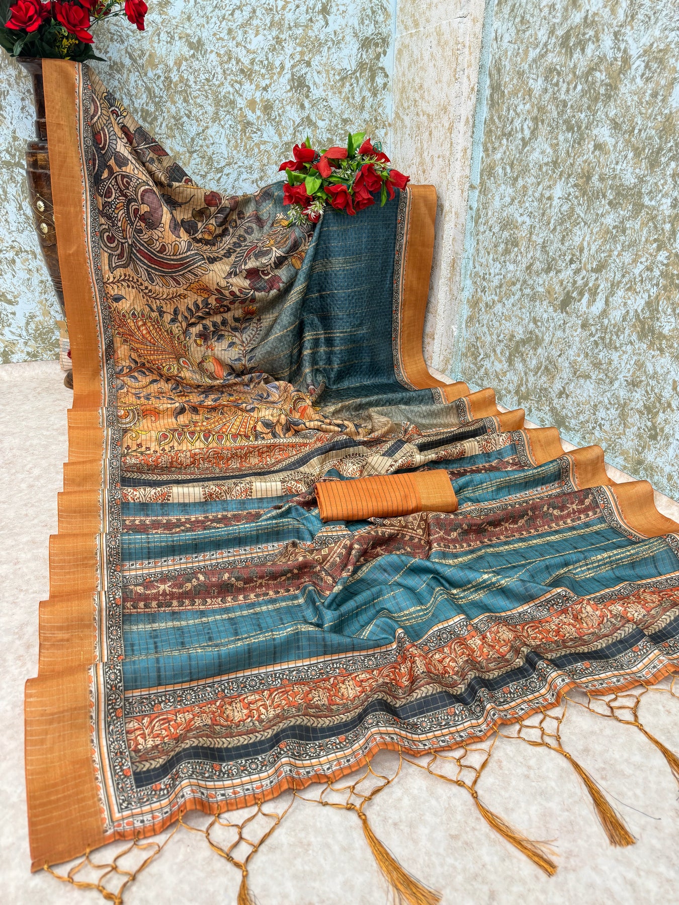 Women's Mysore Silk Digital Print Multicolour Saree With Unstiched Blouse Piece