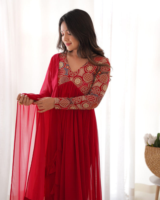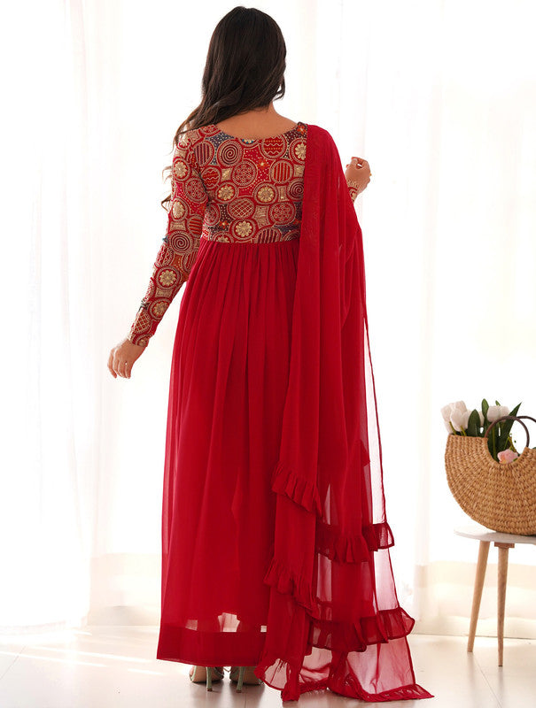 Women's Red Fully Stiched Georgette Embroidered Anarkali Gown