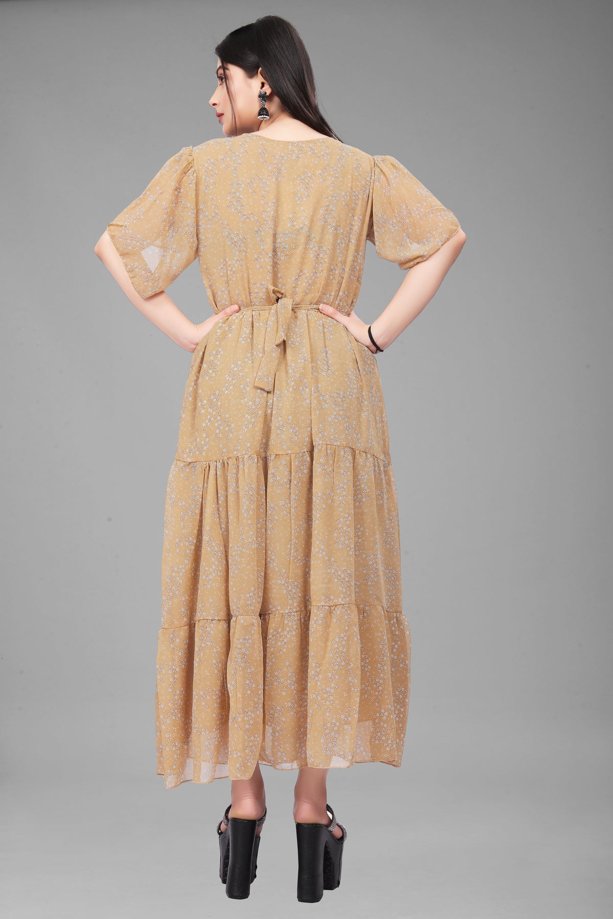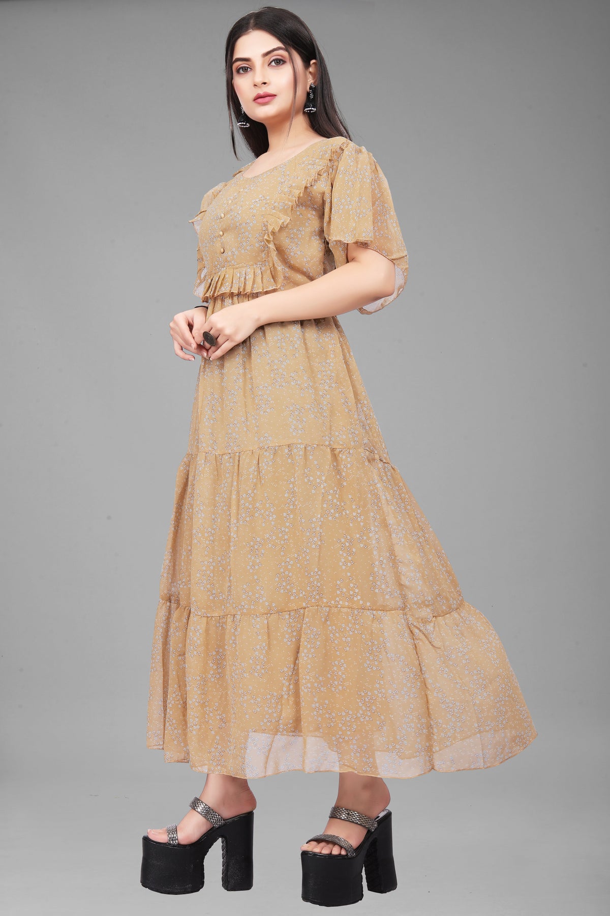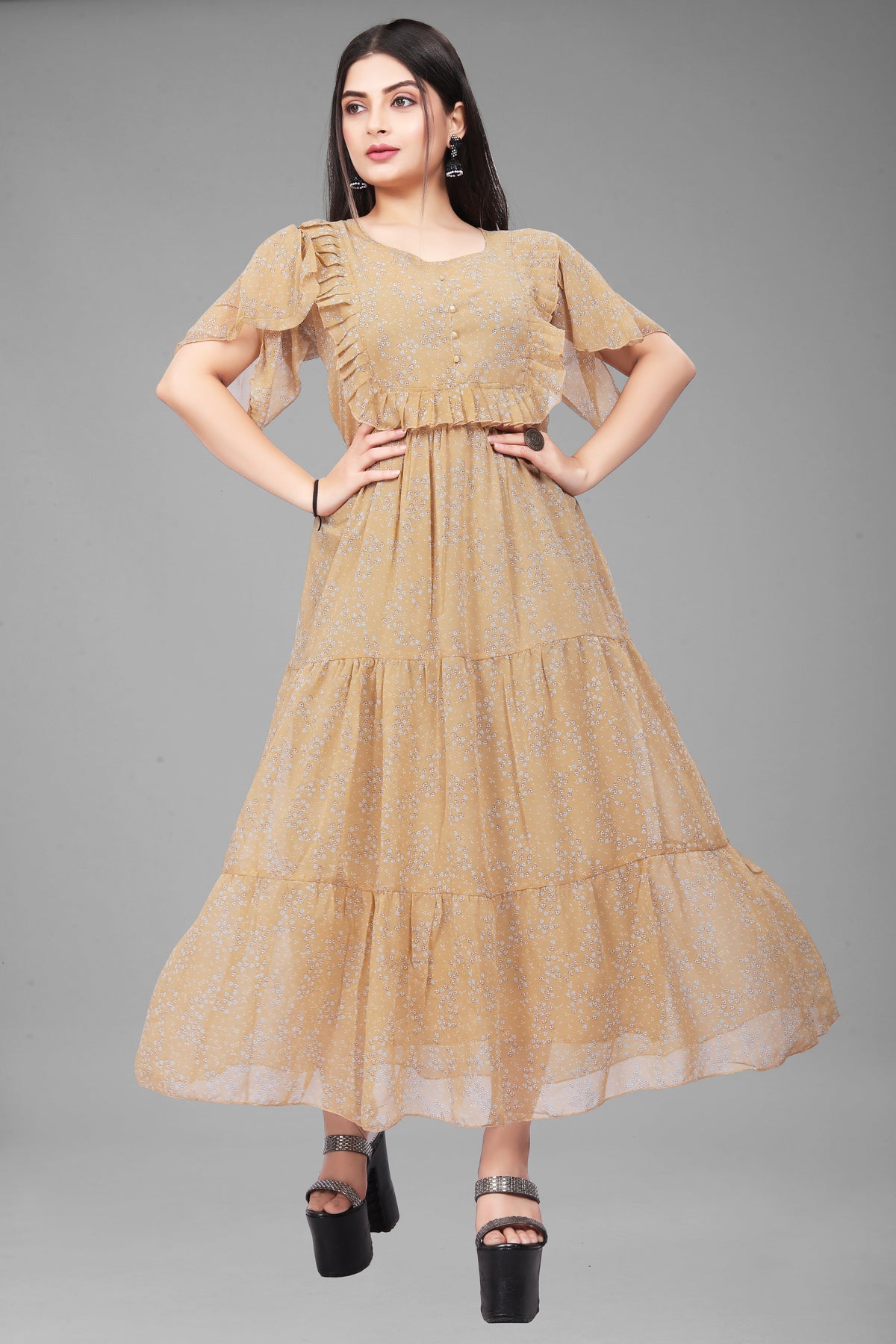 Women's Mustard Georgette Digital Printed Gown - Pr Fashion