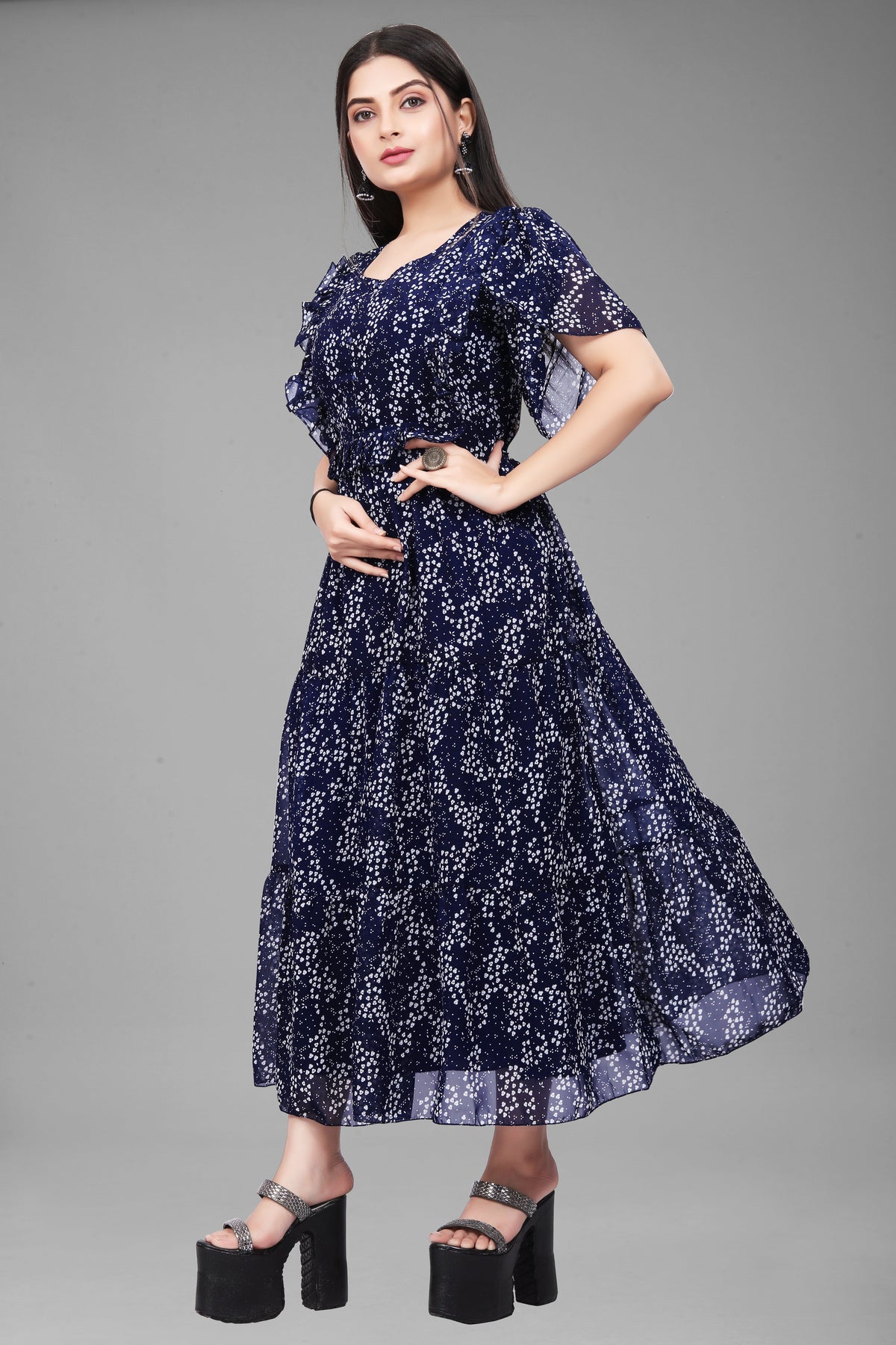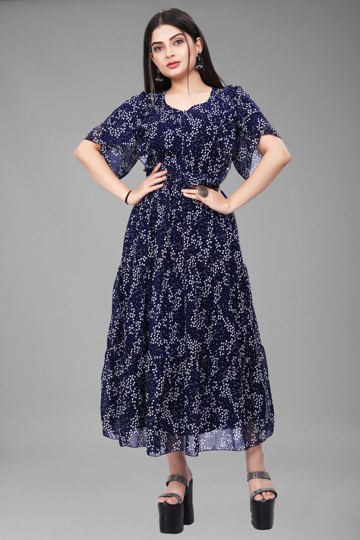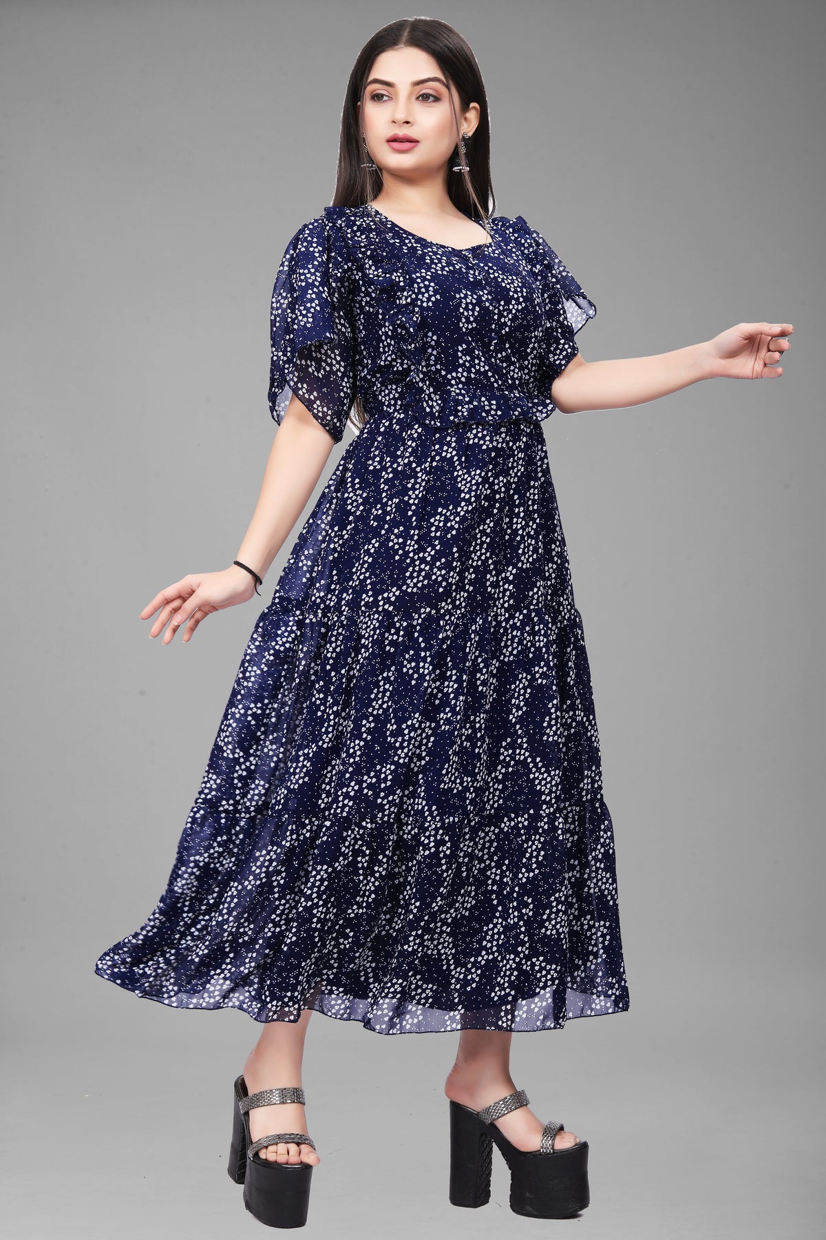 Women's Blue Georgette Digital Printed Gown - Pr Fashion