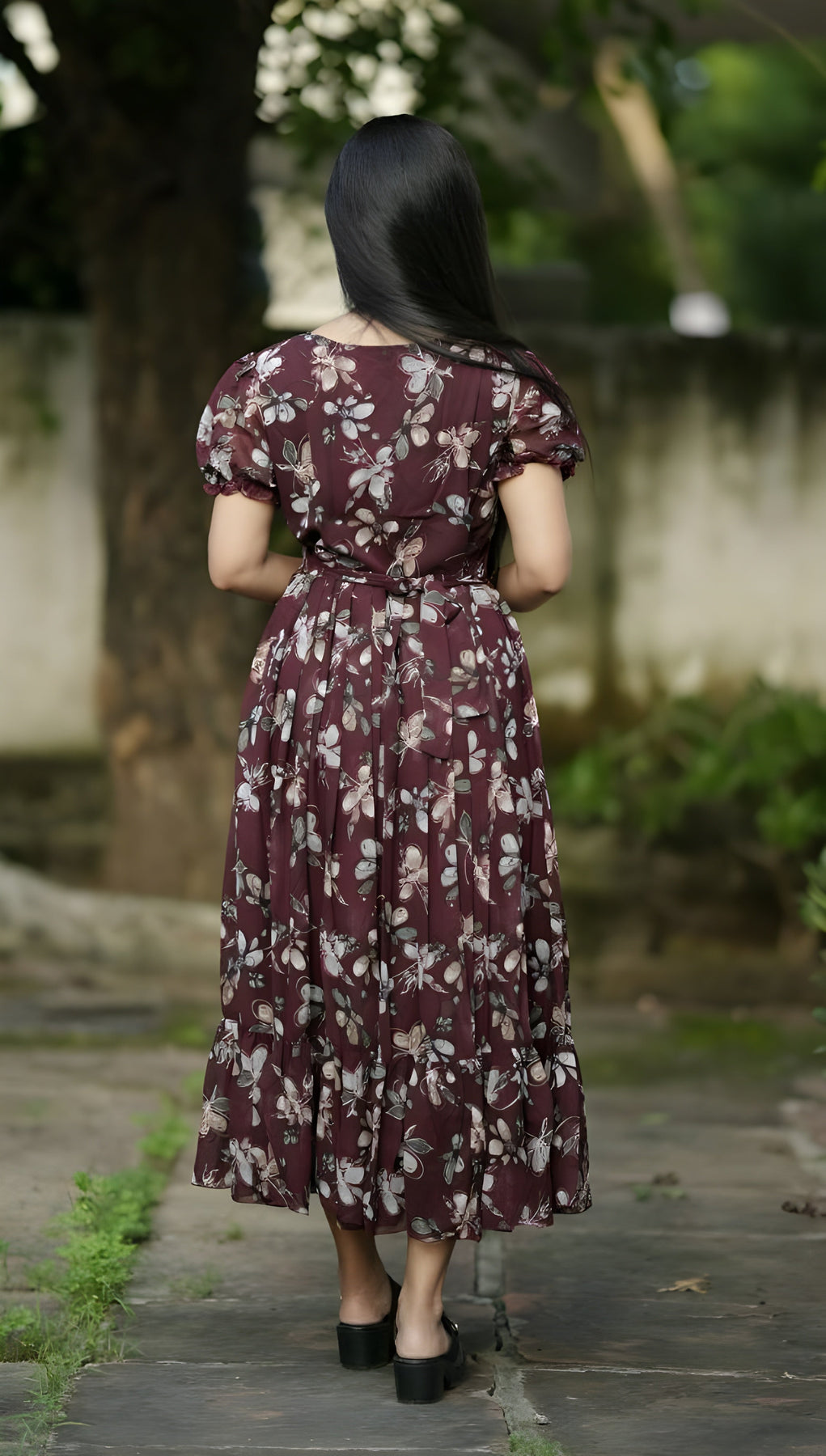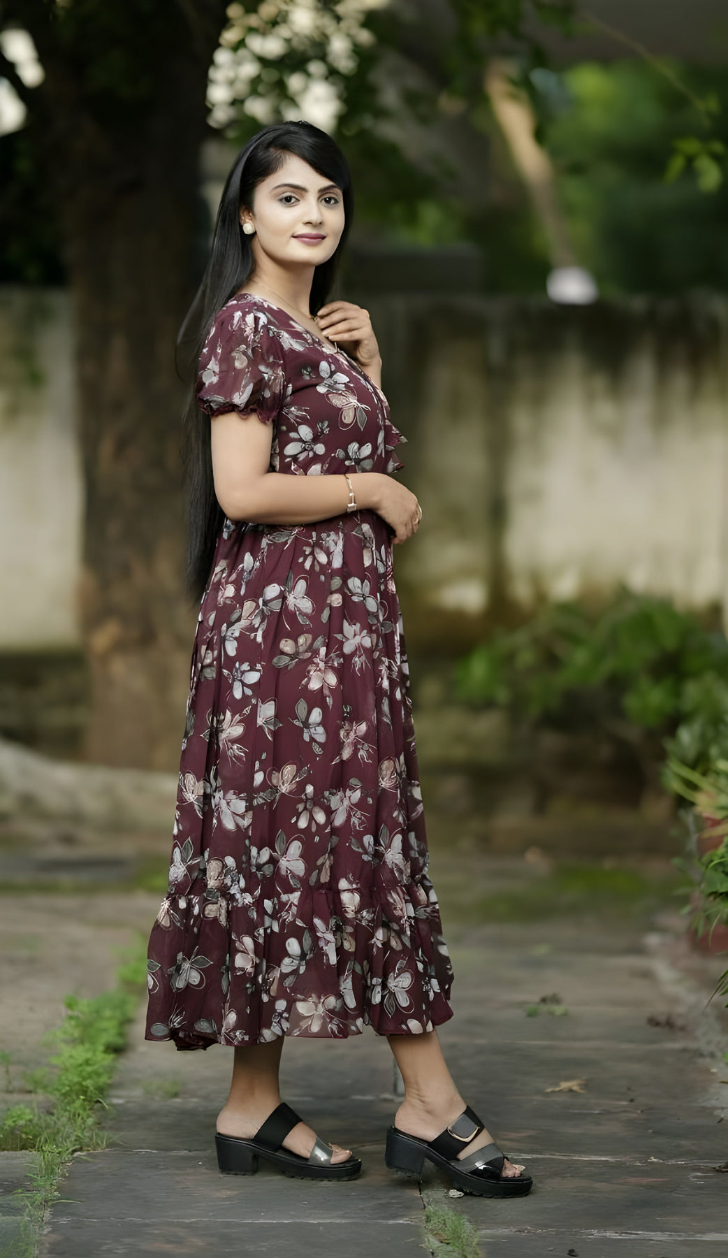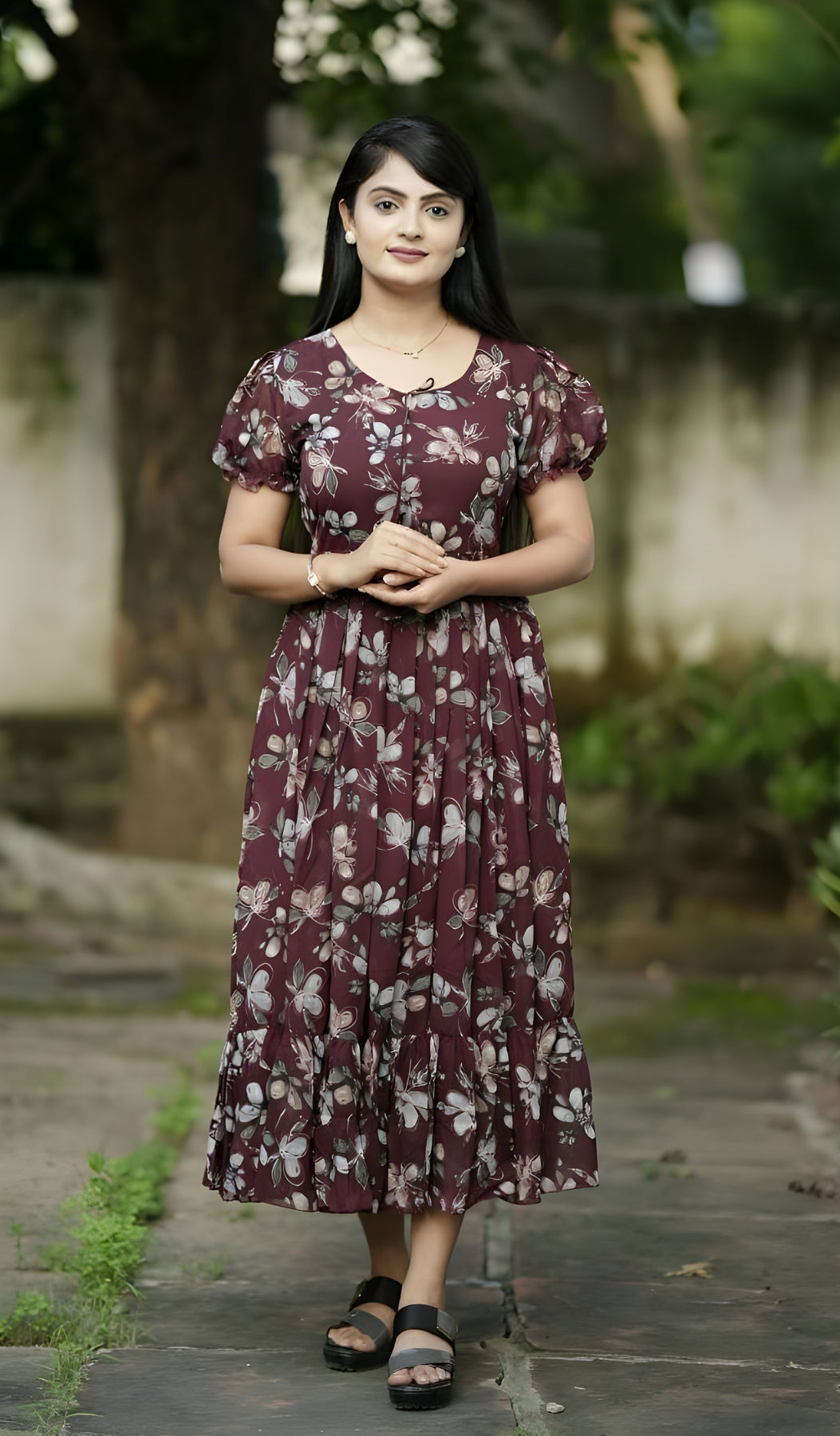 Women's Brown Georgette Digital Printed Gown - Pr Fashion