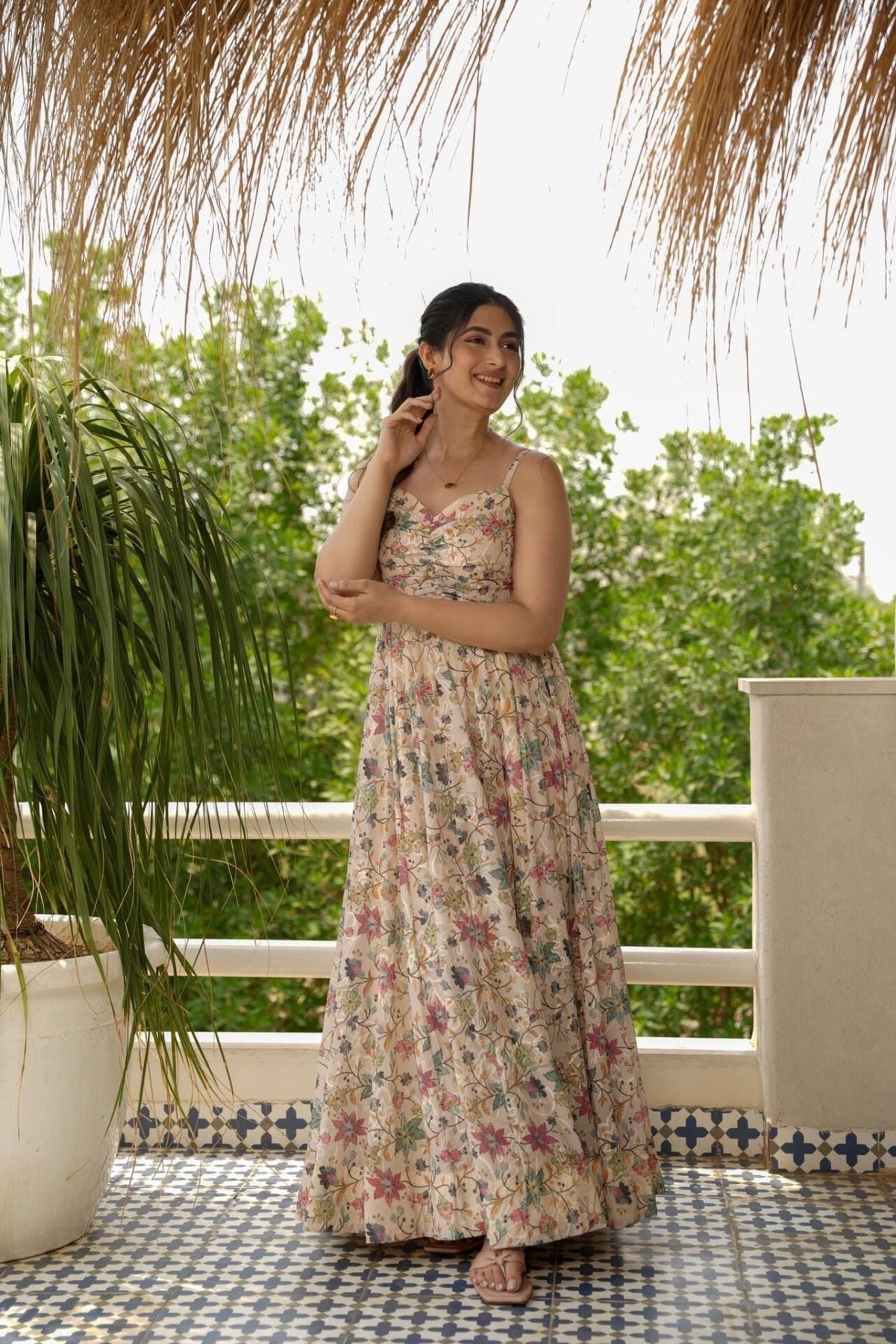 Top Details : Color :Cream Fabric :Rayon Shape :Round Length :52 Inches