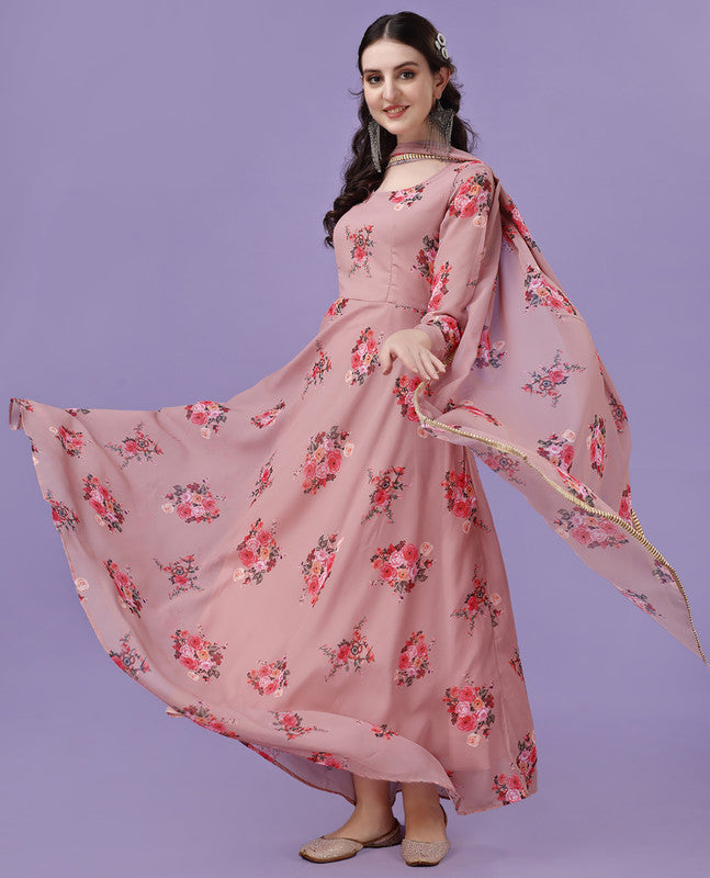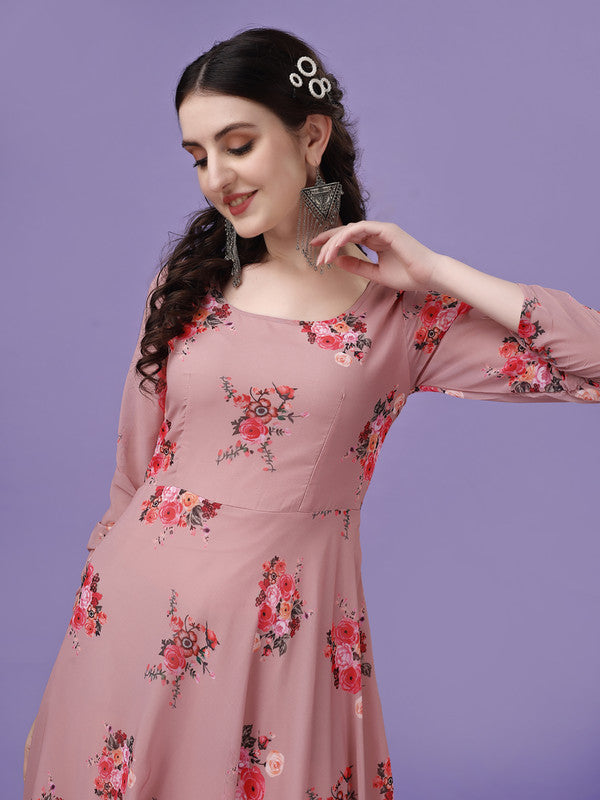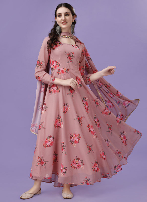 Women's Peach Fully Stiched Georgette Printed Anarkali Gown