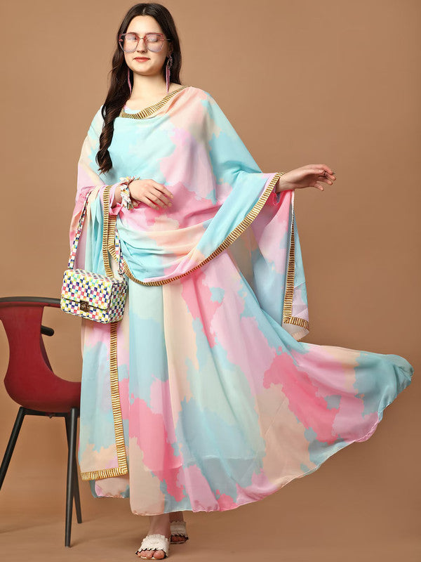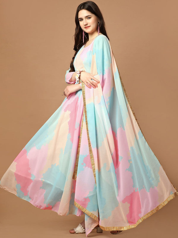 Women's Multicolour Fully Stiched Georgette Printed Anarkali Gown