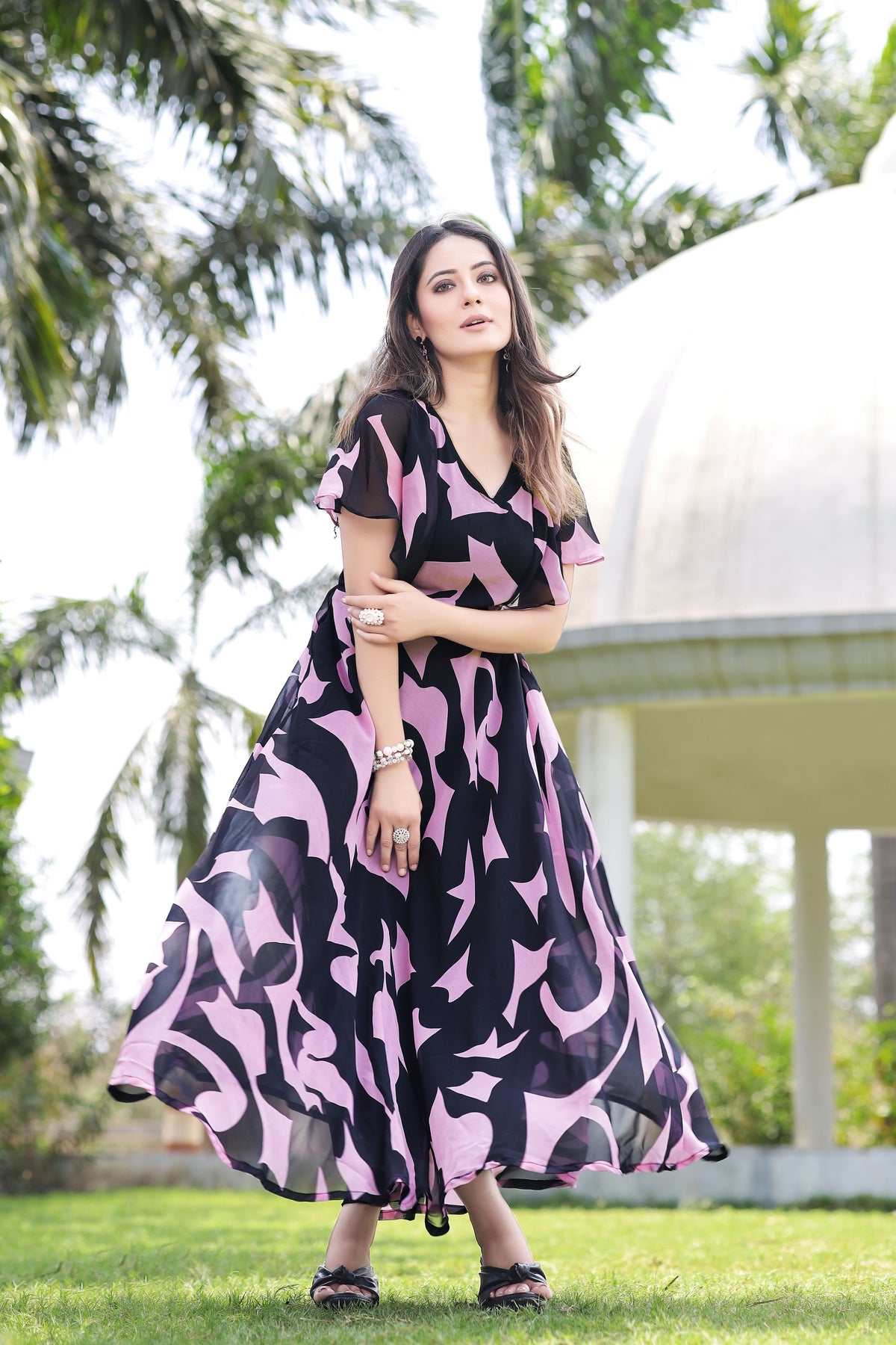 Women's Multi Color Georgette Digital Printed Gown - Pr Fashion