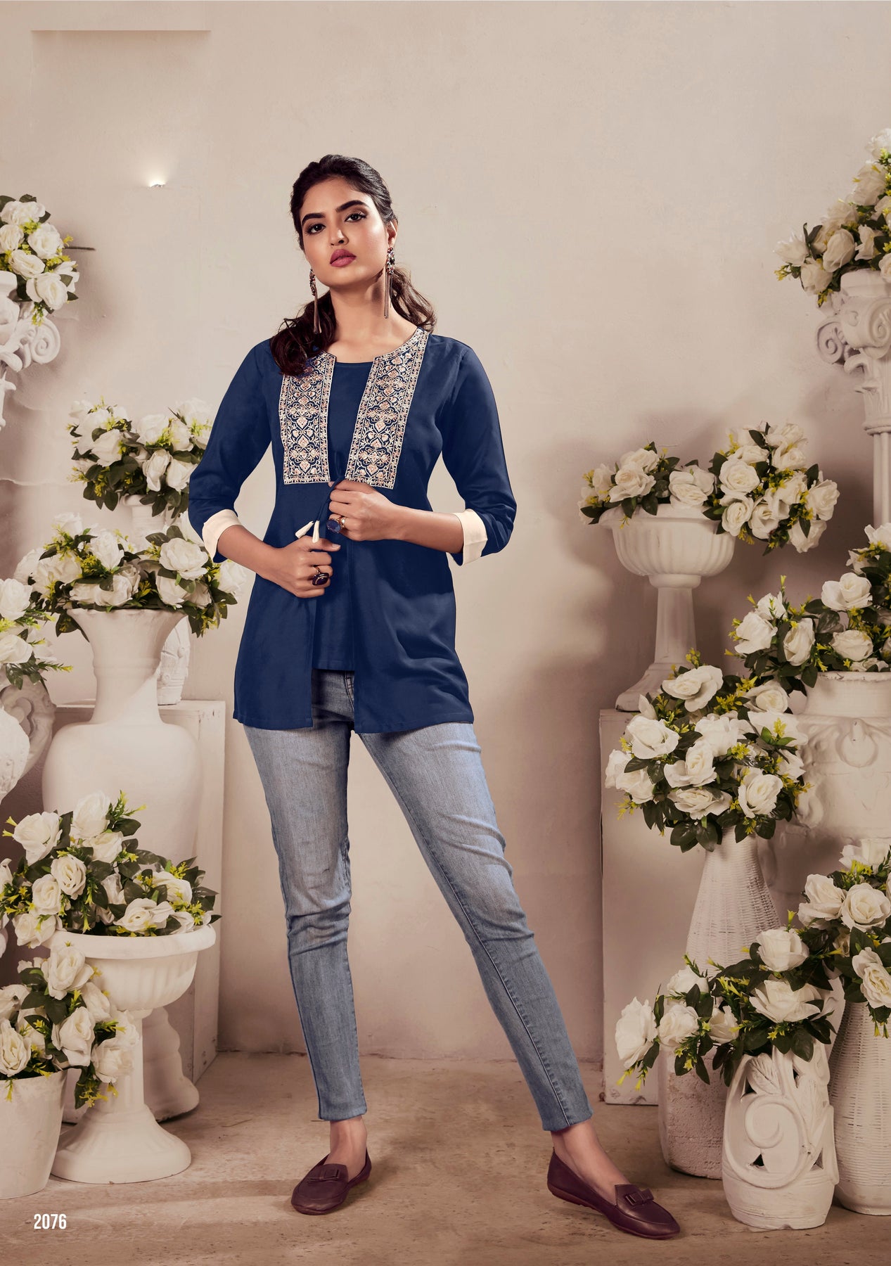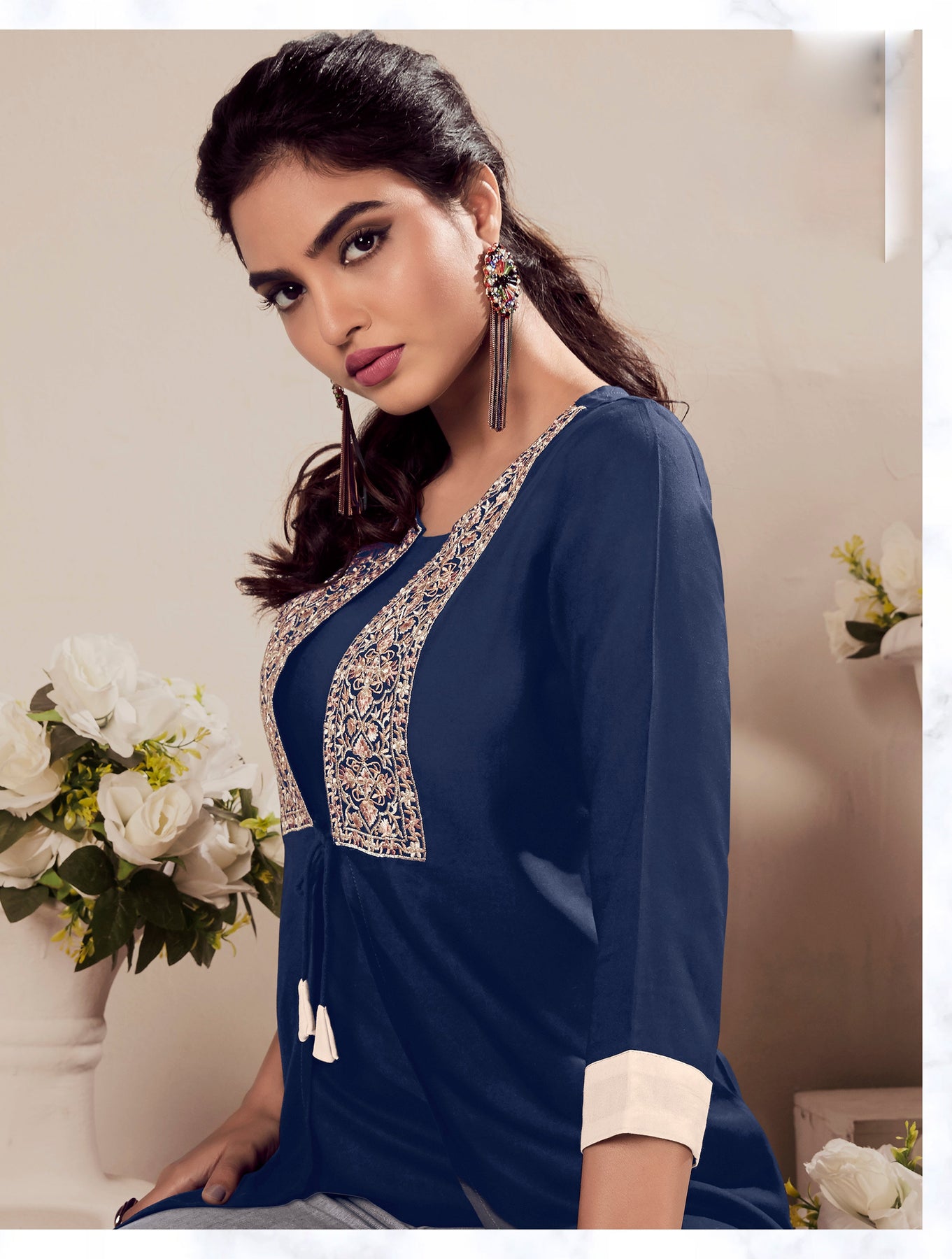 Women's Blue Rayon Embroidery Gown - Pr Fashion