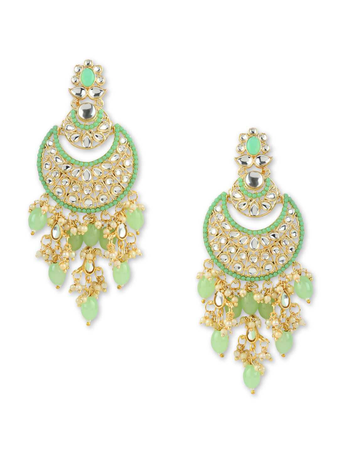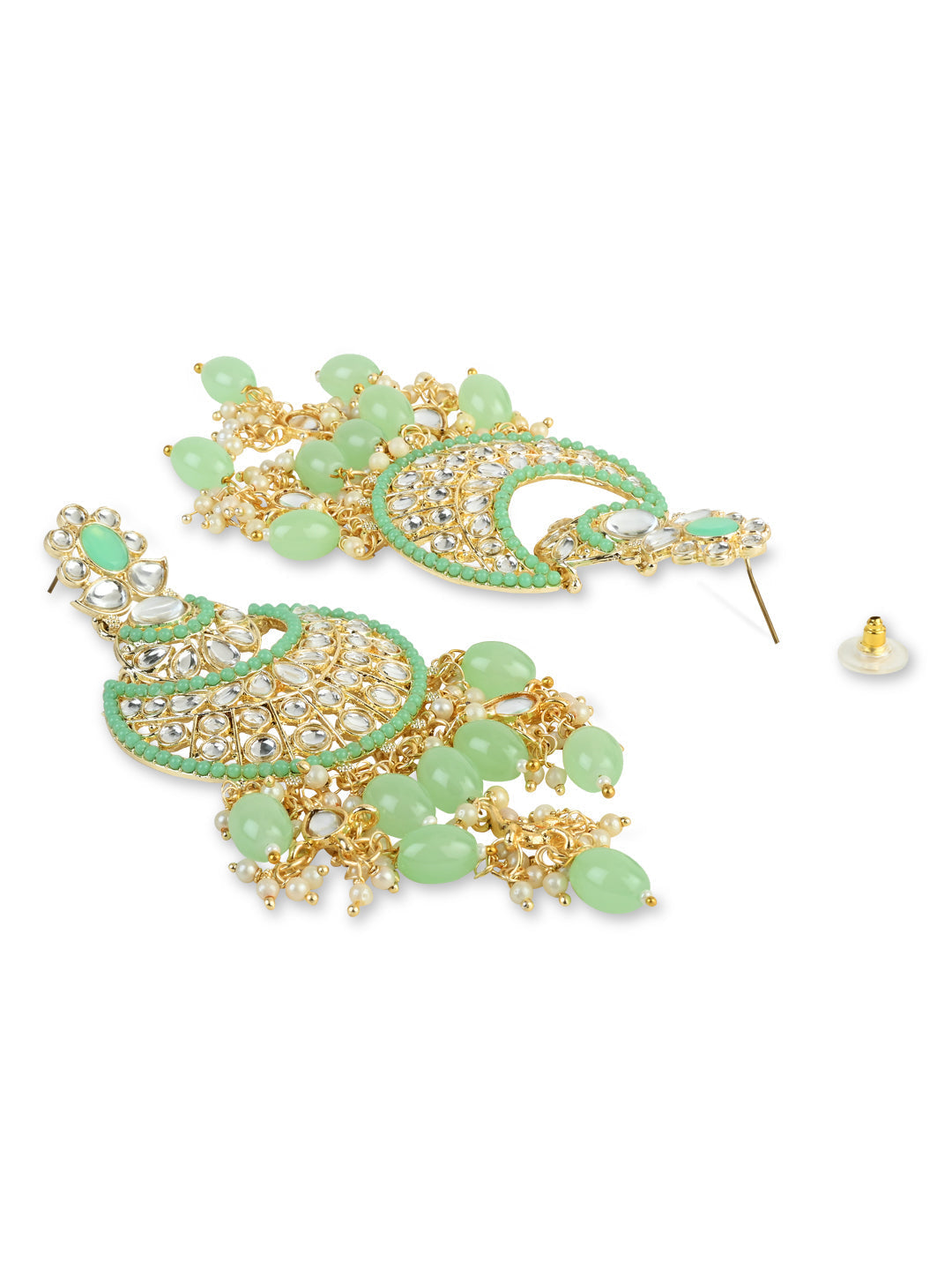 Women's 18K Gold Plated Traditional Handcrafted Pearl Kundan Beaded Chandbali Earrings (E3053Min)