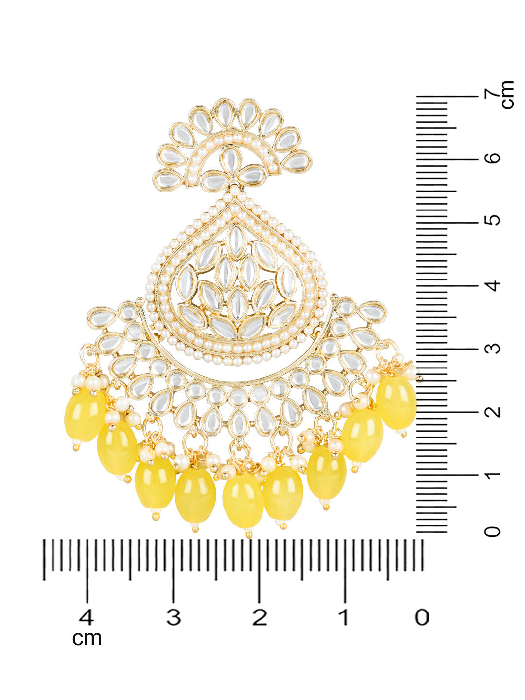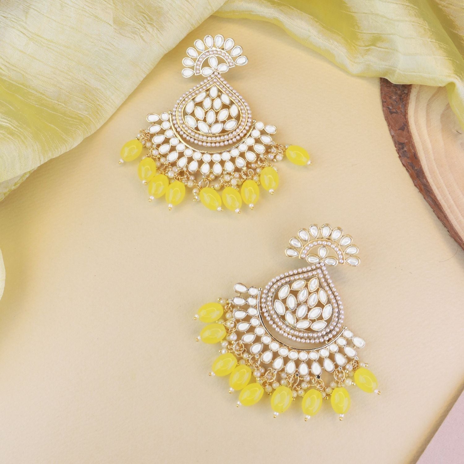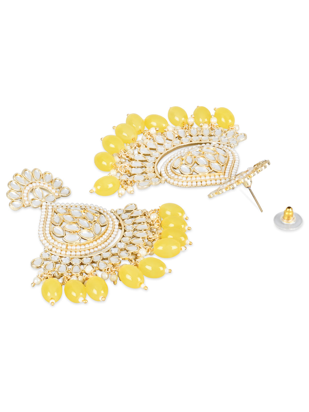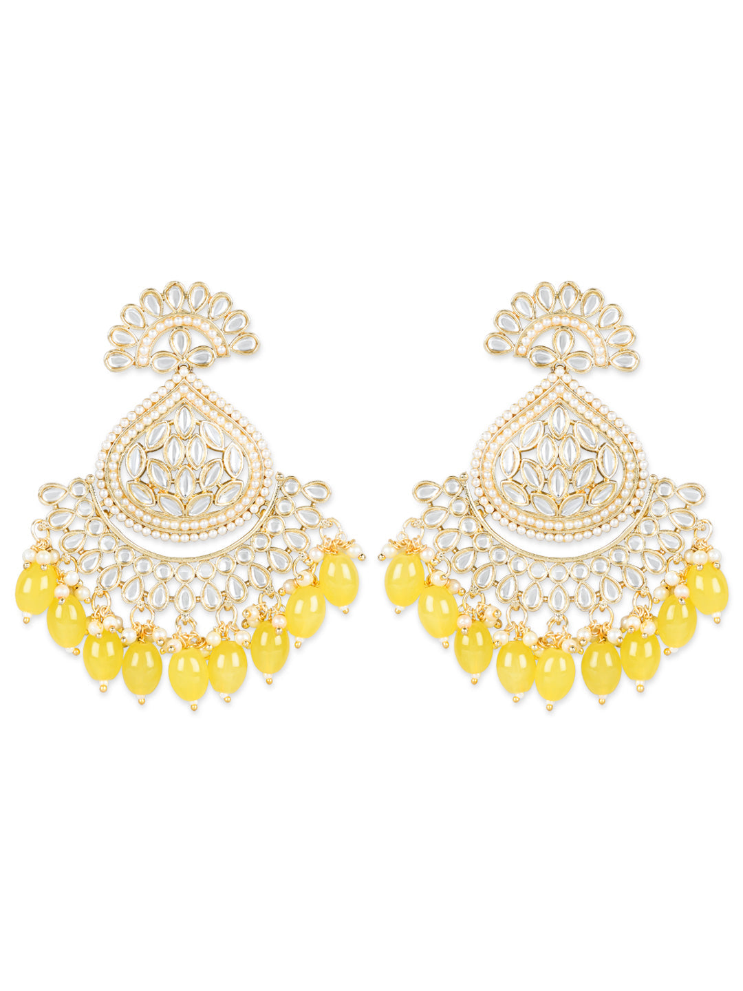 Women's 18K Gold Plated Traditional Handcrafted Pearl Kundan Beaded Earrings (E3016Y)