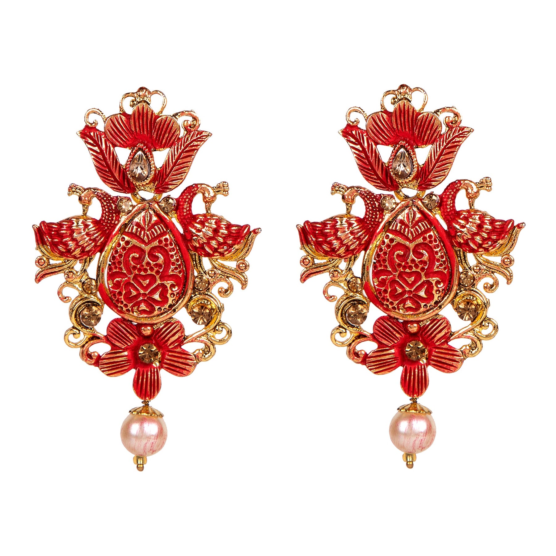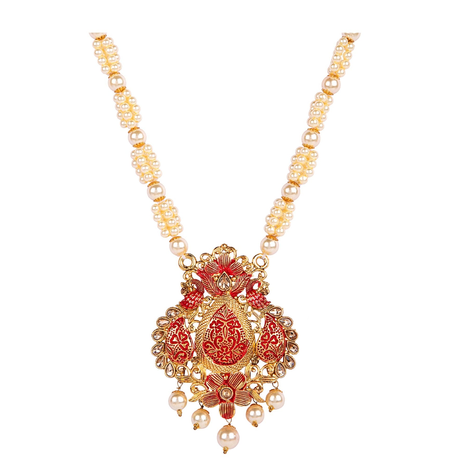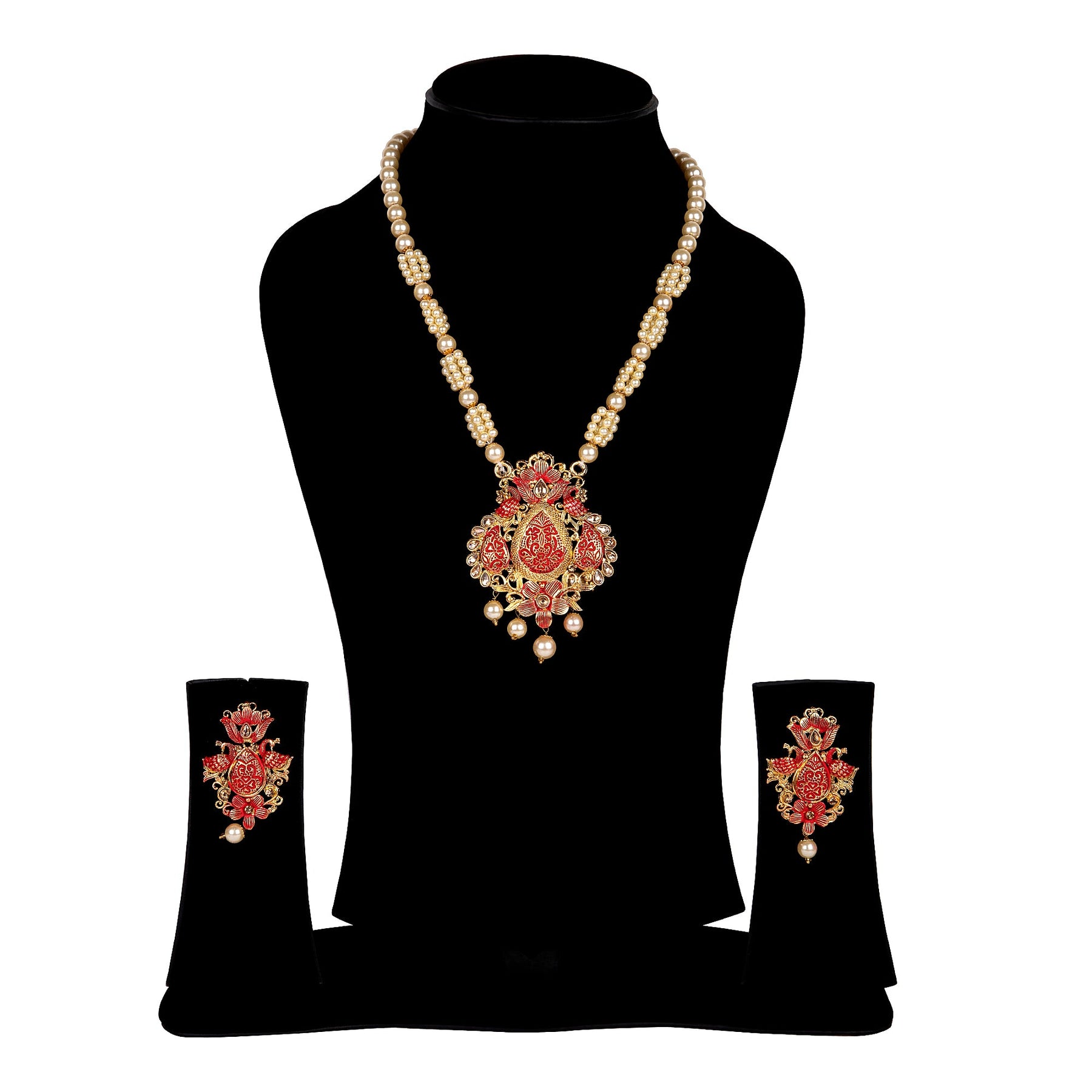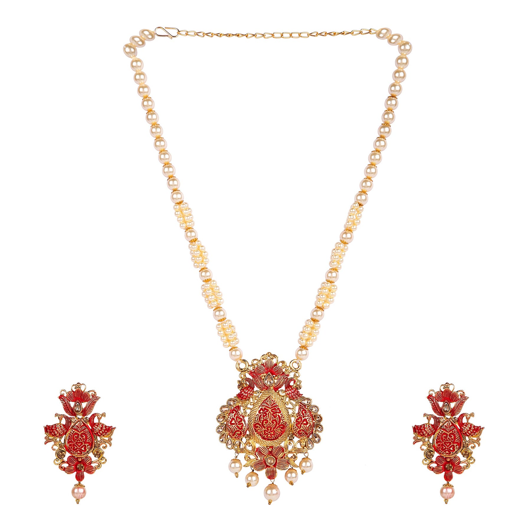 Women's Antique Matte Gold Finish Maroon Stone Studded Temple Jewellery set