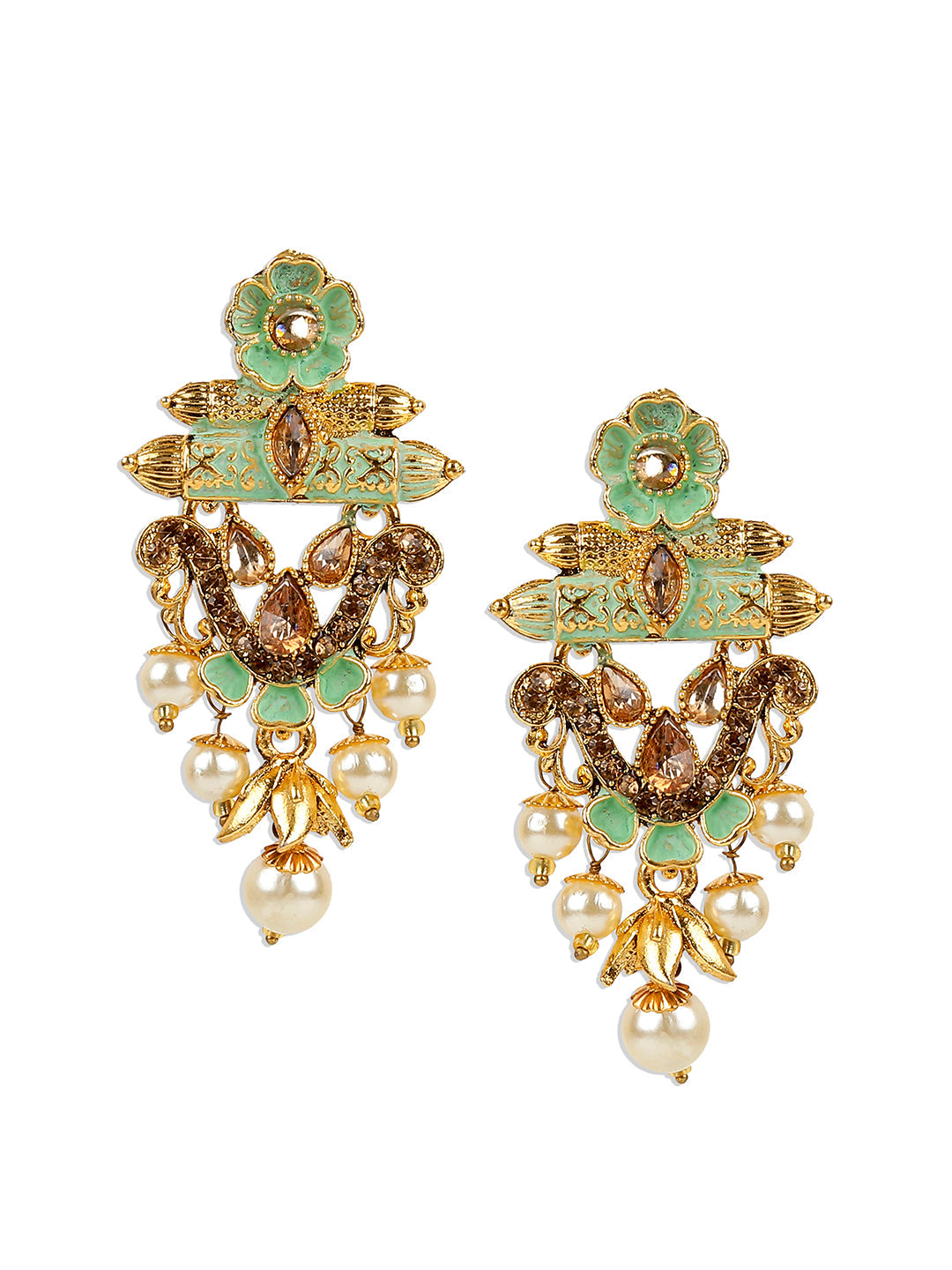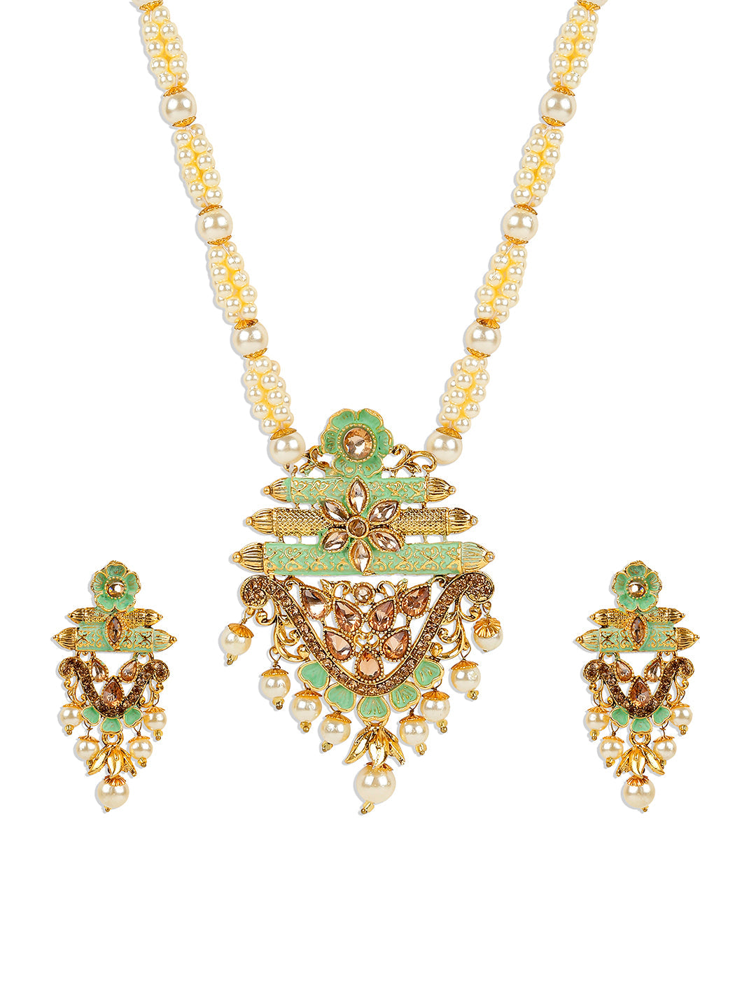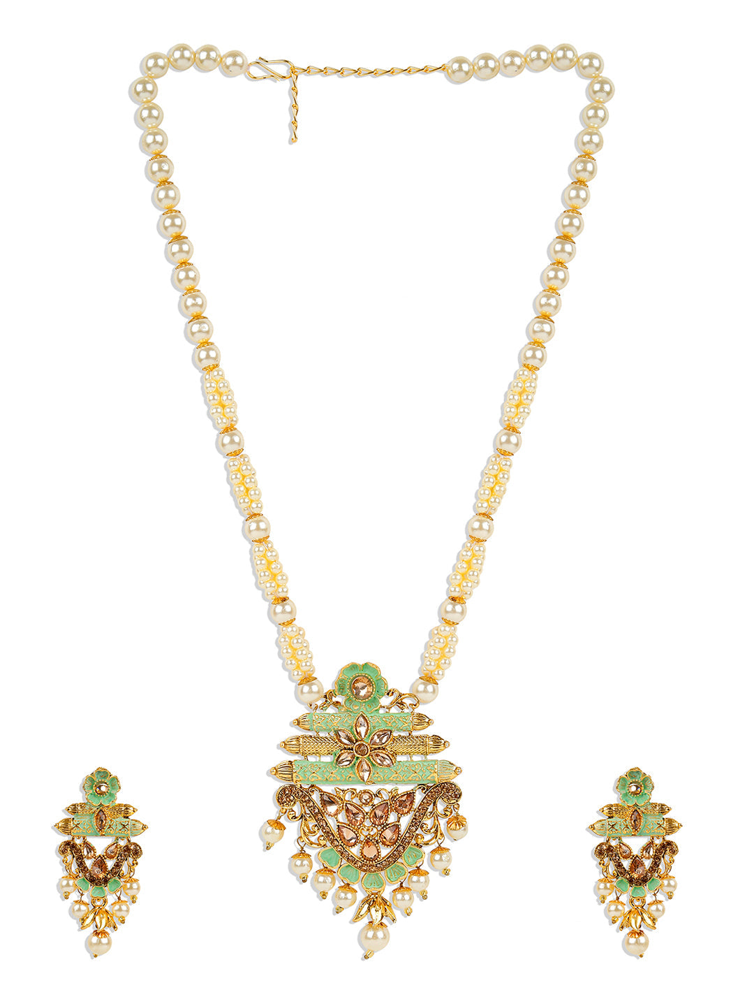Women's Antique Matte Gold Finish Meenakari Pearl Jewellery
