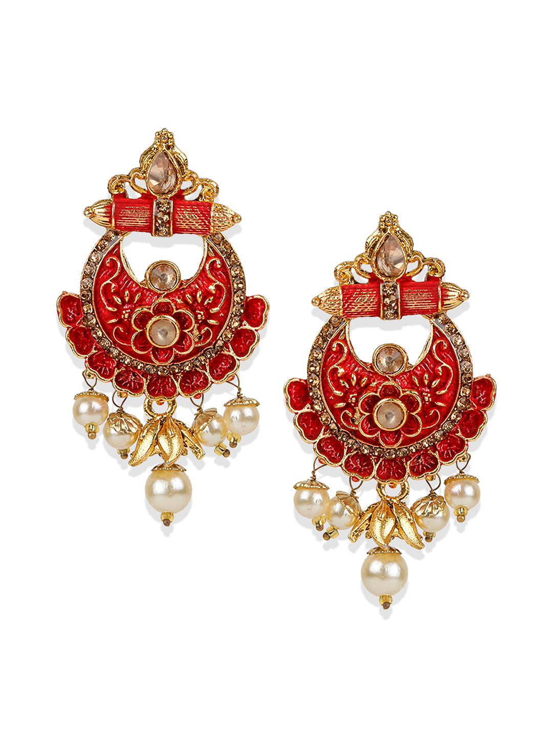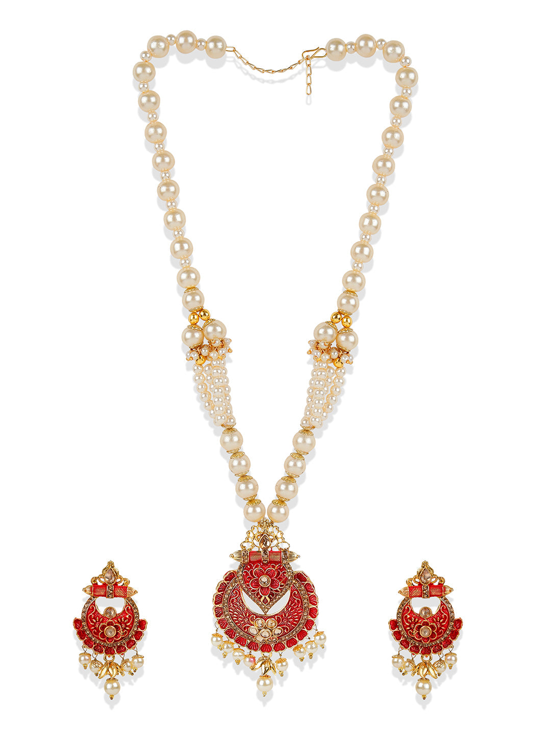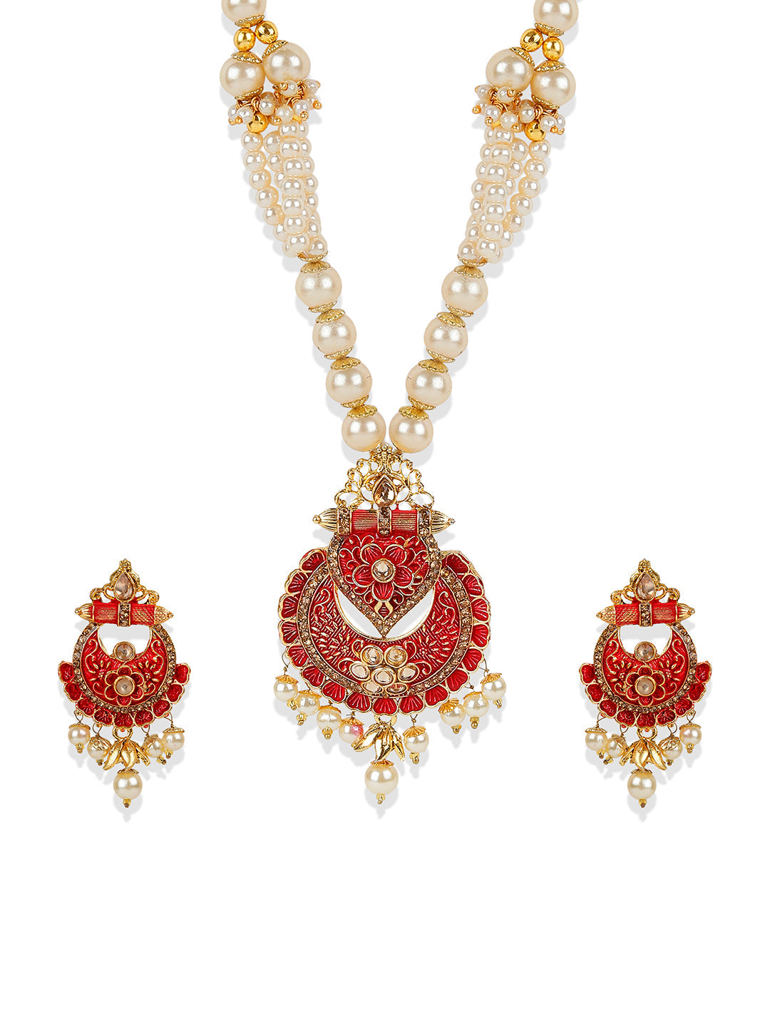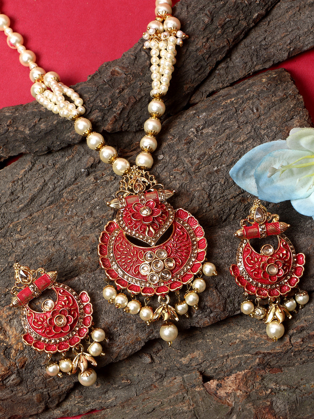 Women's Antique Matte Gold Finish Meenakari Pearl Jewellery