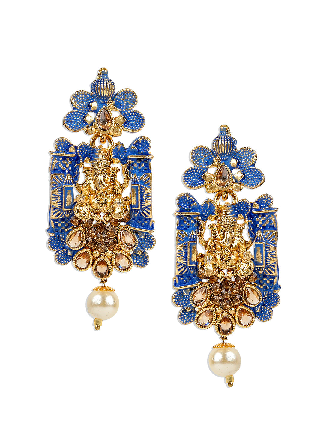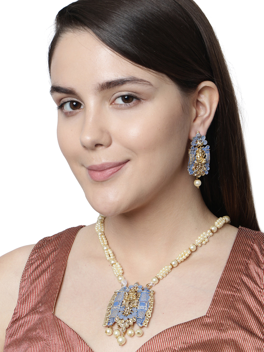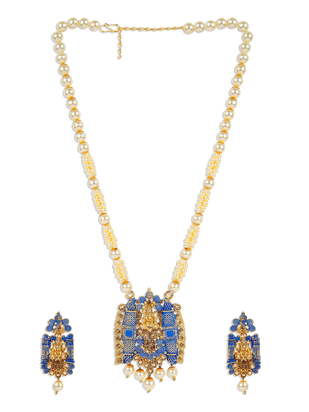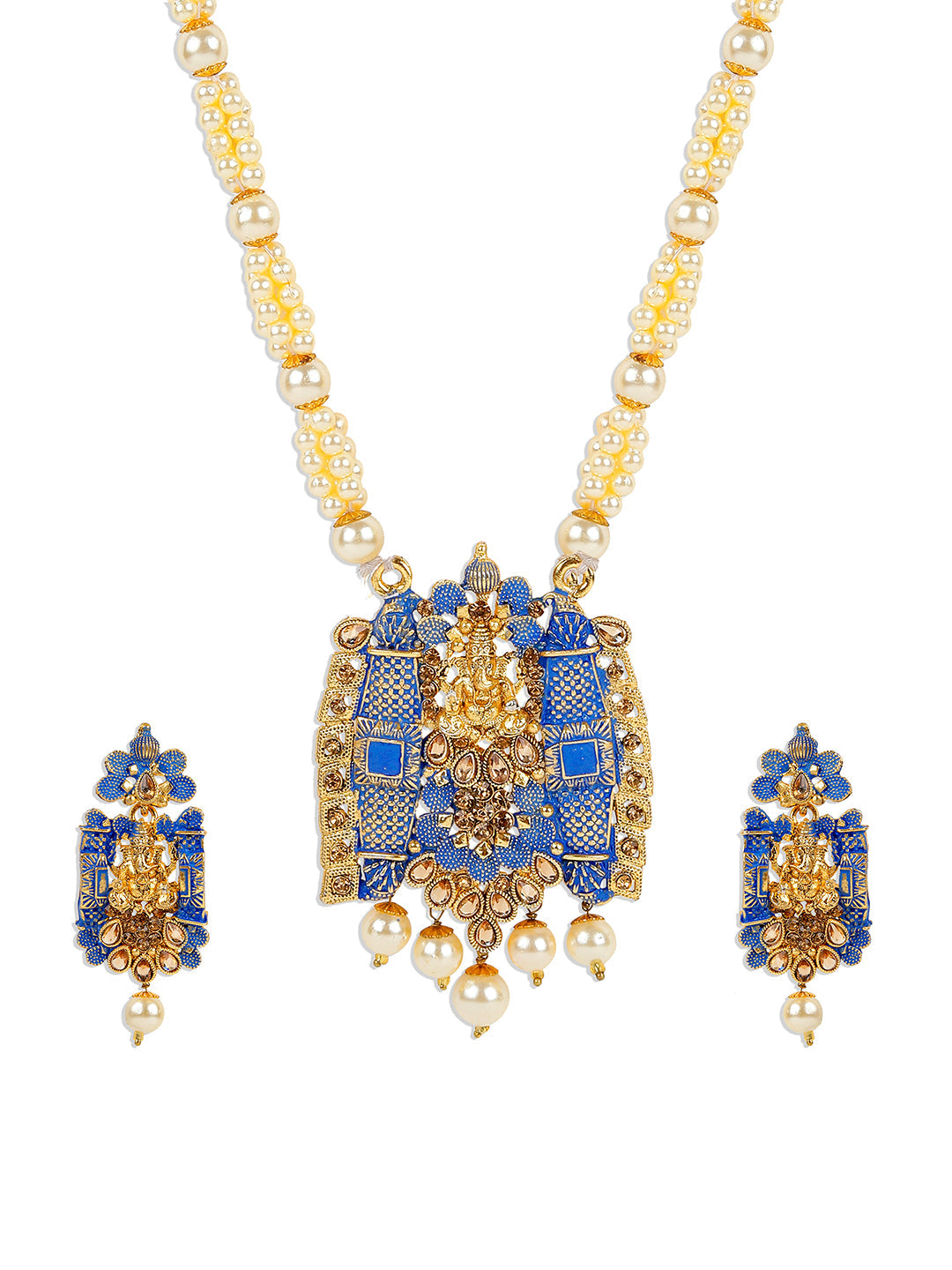 Women's Antique Matte Gold Finish Meenakari Pearl Temple Jewellery