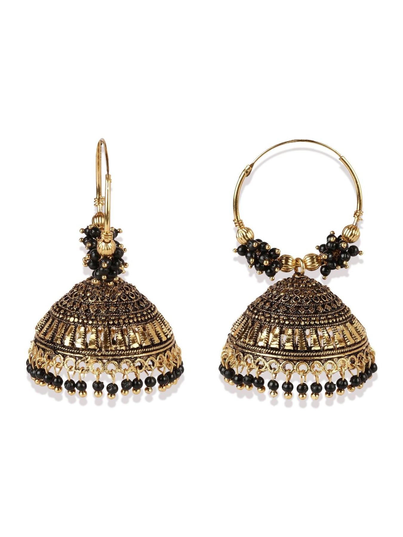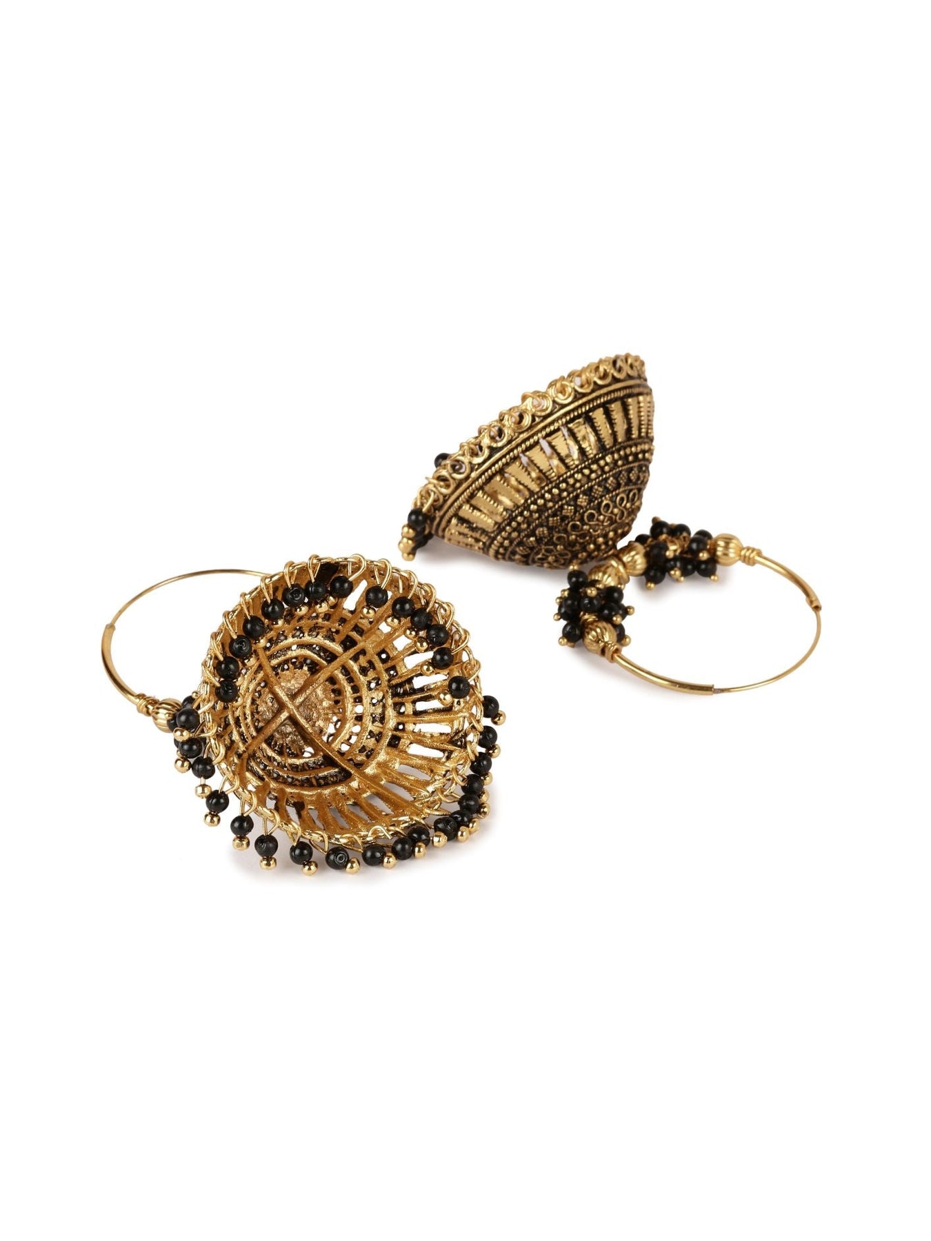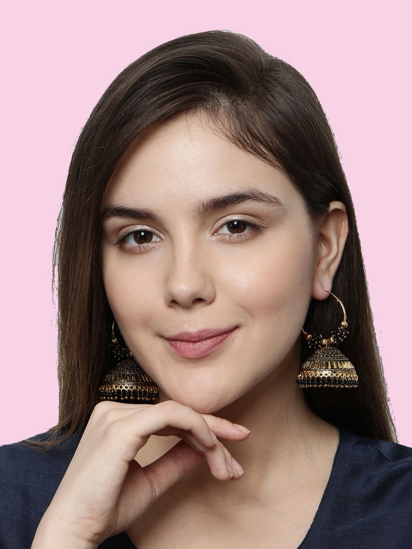 Women's Black & Gold-Plated Enamelled Dome Shaped Jhumkas