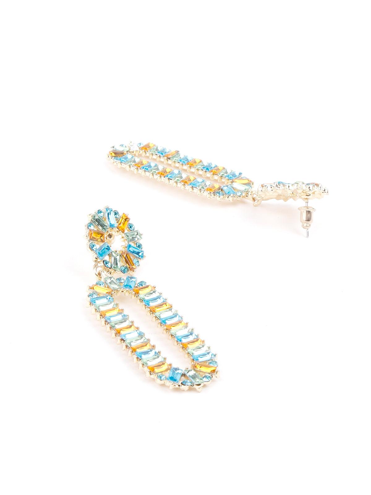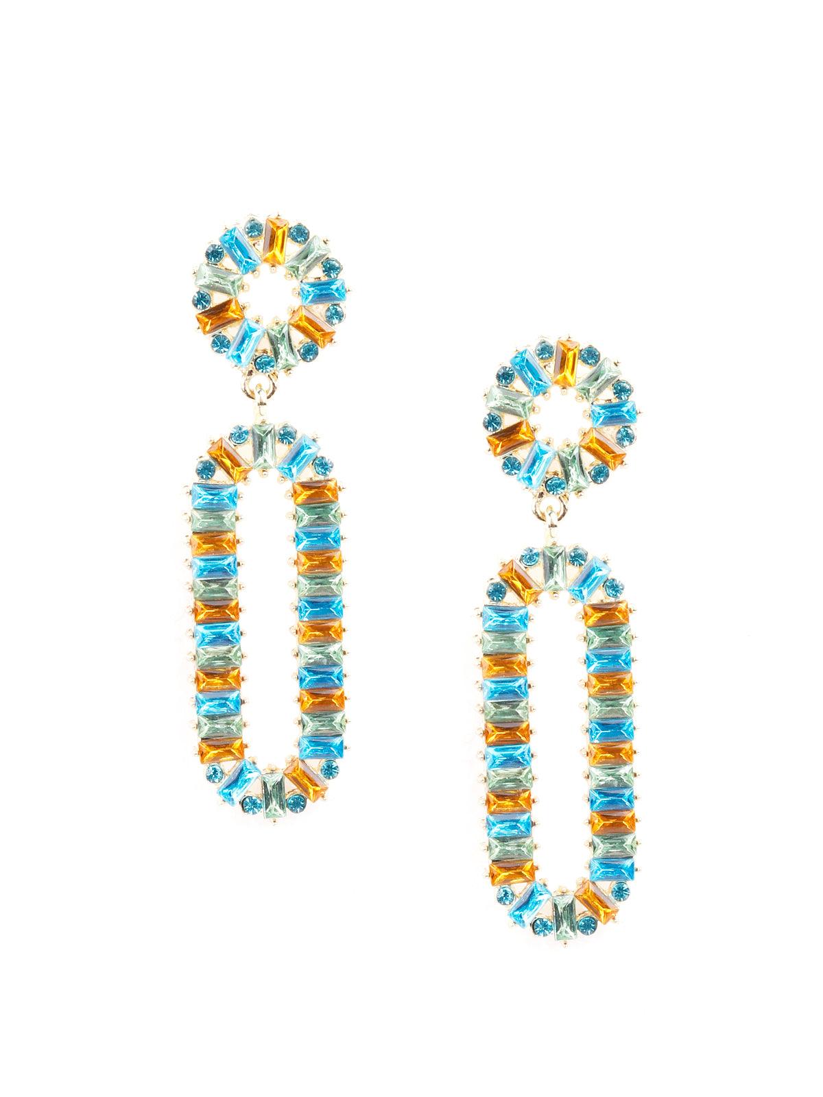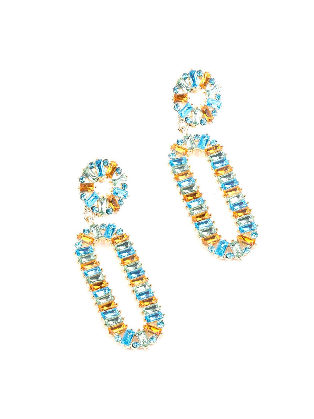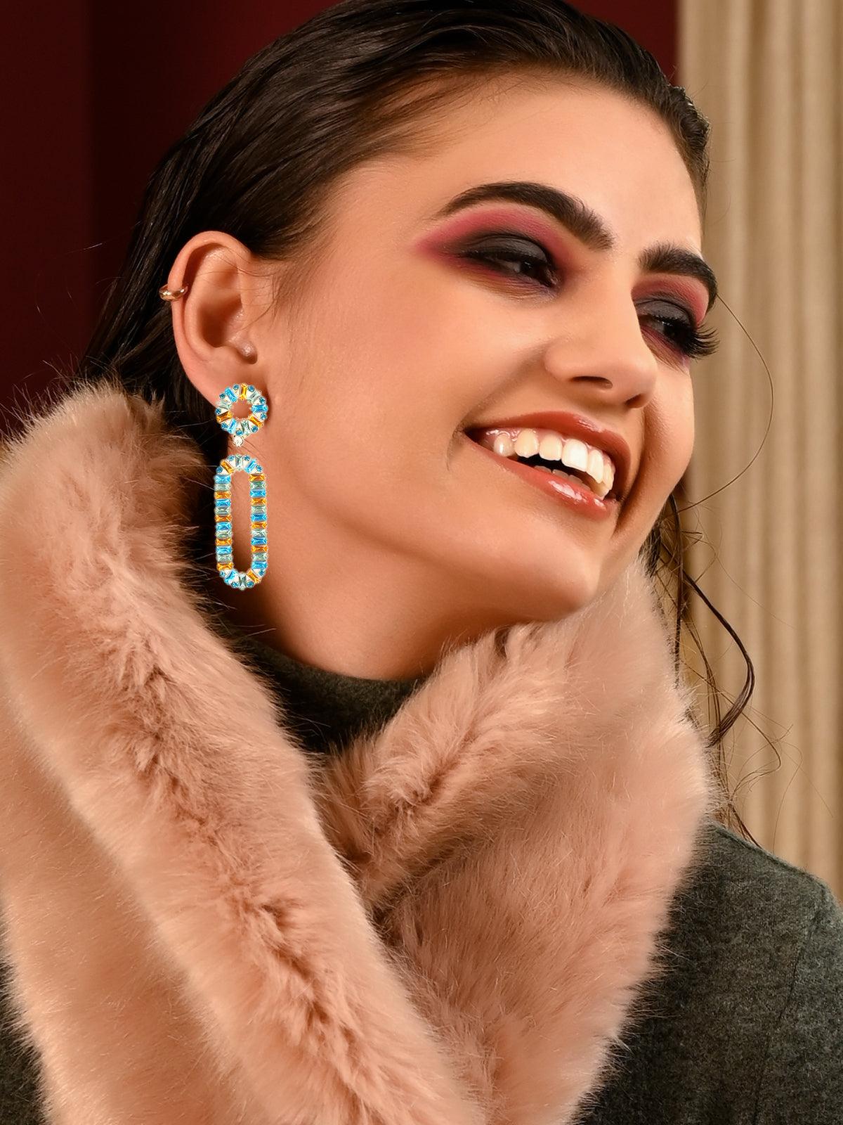 Odette presents this gorgeous earring embellished with faux crystals in the blue and gold shade. The earrings are super versatile and have a lot of class and femininity to them. The earrings are secured with a push back closure fastening.
